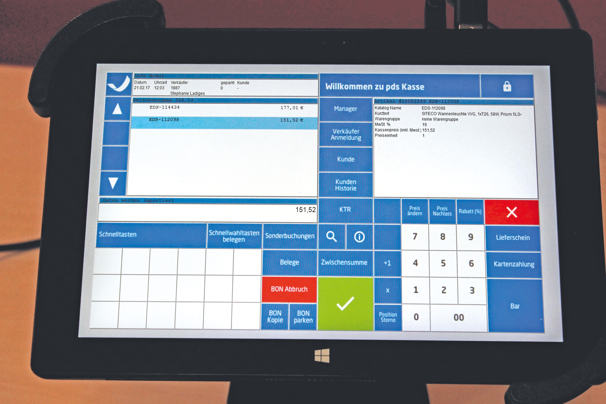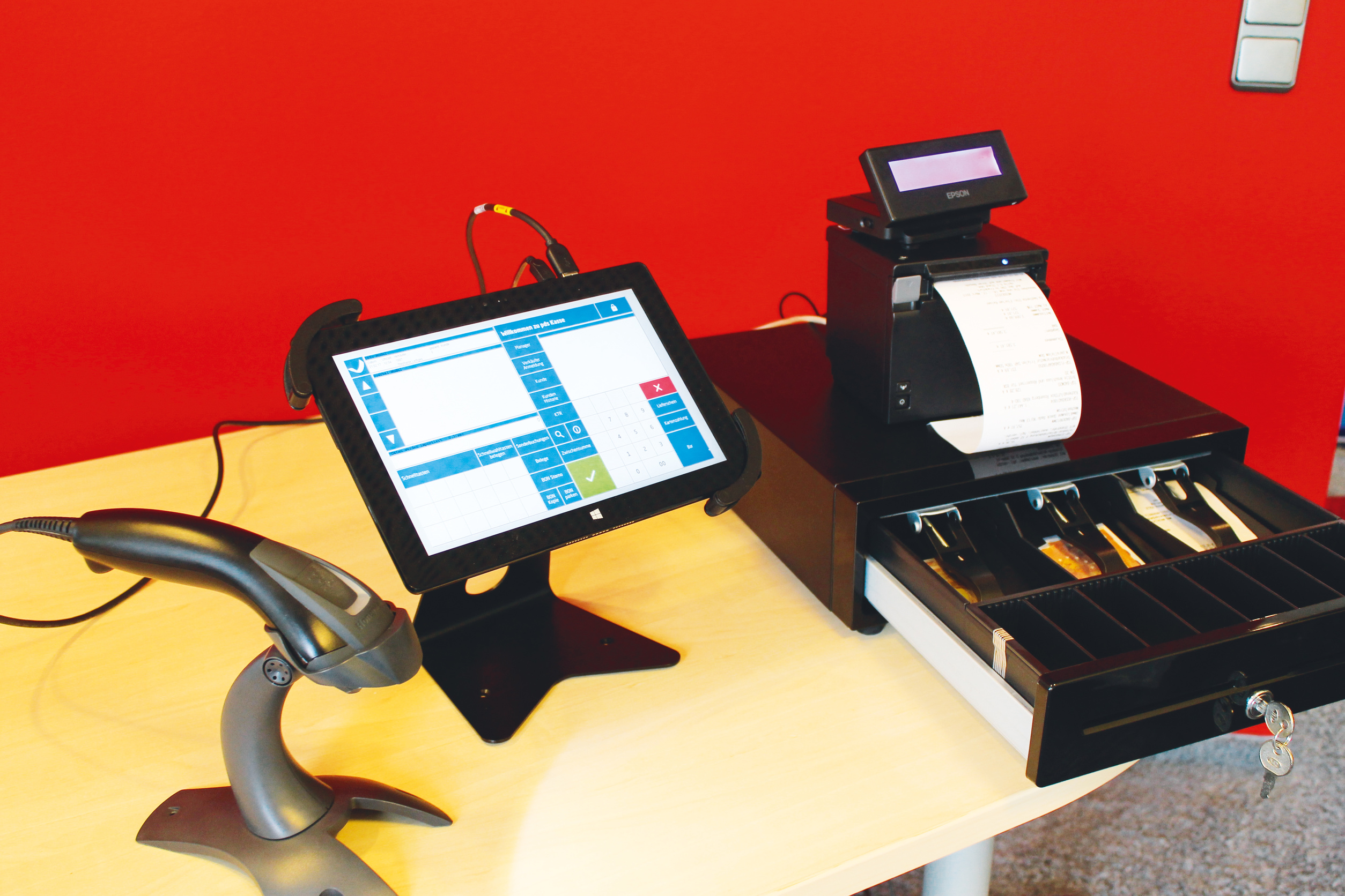 Das Bündel PDS Kasse besteht aus einer PC-gesteuerten Kassenlade, einem Windows-Tablet, einem Bon-Drucker mit Mini-Display sowie einem Softwaremodul, das die Kasse nahtlos in die PDS-Umgebung einbindet. Auf Anfrage sicherte PDS zu, das Modul baue auf die Software des Herstellers der Kassenlade auf und dieser könne voraussichtlich auch zukünftige Buchhaltungsvorschriften durch Software-Patches erfüllen (siehe c’t 26/16, S. 80 und 154). Auch ein Barcode-Leser soll sich an das System anschließen lassen. (hps@ct.de)