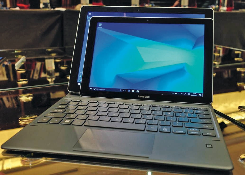 Die mitgelieferte Tastatur kann auch im Tablet-Modus angesteckt bleiben und wird hinter das Gerät geklappt. Dabei schaltet sie sich automatisch ab. Platz für den im Lieferumfang enthaltenen Wacom-Stift gibt es im Gehäuse nicht, Samsung liefert lediglich eine an die Tastatur anklebbare Schlaufe mit. Das Gewicht liegt bei 640 beziehungsweise 754 Gramm – ohne Tastatur. Beide Modelle sollen voraussichtlich Ende des zweiten Quartals erscheinen.