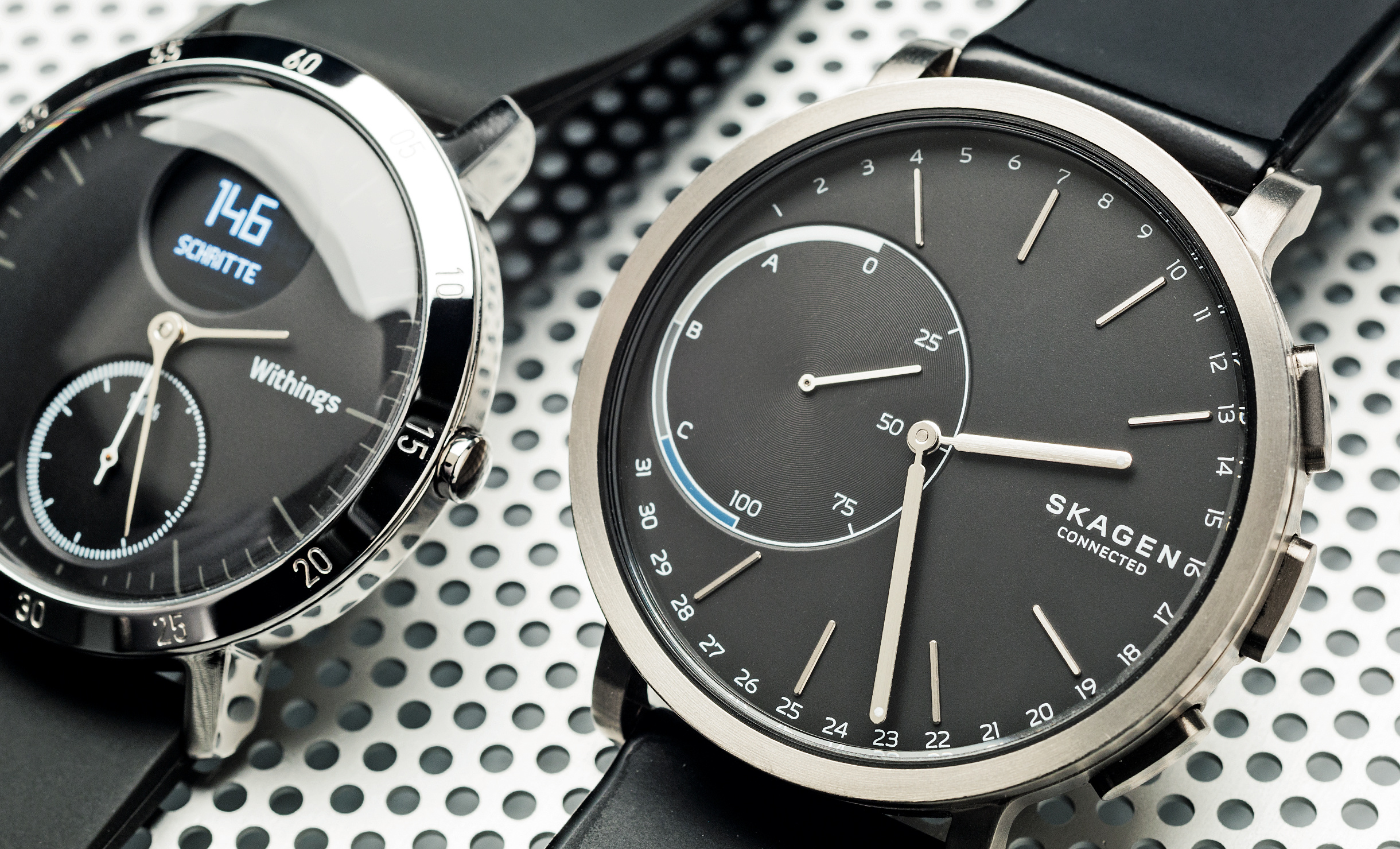 Hybride Smartwatches sind außen analog und dezent, innen digital und smart. Zwar erreichen sie nicht den Funktionsumfang echter Smartwatches, dafür sehen sie besser aus und müssen nicht so häufig nachgeladen werden. c’t untersucht, was Hybrid Watches können und für wen sie sich eignen.