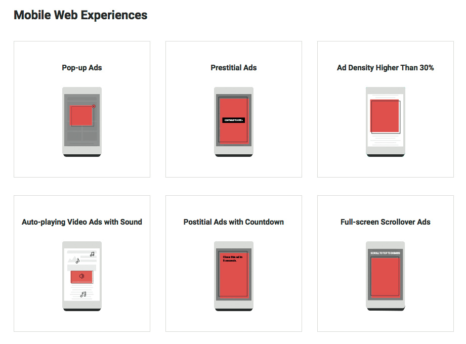Die sogenannte Coalition for Better Ads hat untersuchen lassen, welche Werbeformen Surfer als besonders nervig empfinden. Dazu wurden 25.000 Nutzer in Nordamerika und Europa befragt. Auf dem Desktop fielen dabei insbesondere vier Werbeformen durch: Pop-ups, Autoplay-Videos mit Ton, Vorschaltseiten mit Countdown und große Werbebanner, die mitscrollen. Mobil kommen weitere Werbeformate hinzu: So empfinden Nutzer auffällige Animationen, Vollbild-Werbung, die beim Scrollen erscheint, und mobile Webseiten mit mehr als 30 Prozent Werbung als zu störend.