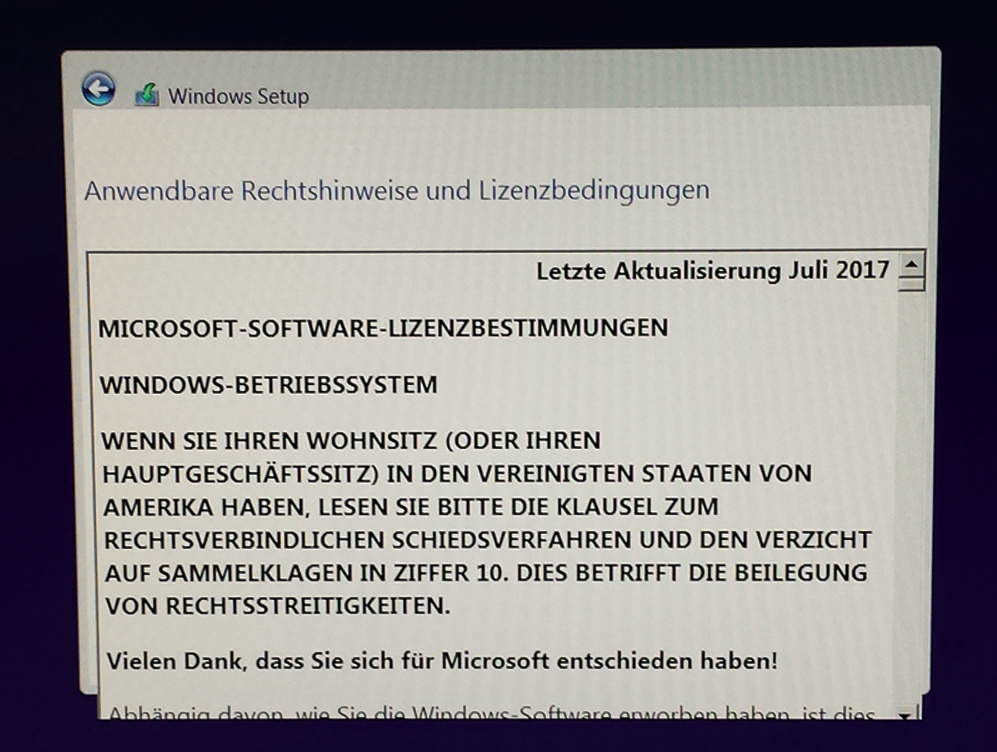 ¯??? Ich versuche gerade, meine Windows-7-Installation wie in c’t 25/2017 ab Seite 156 beschrieben per Upgrade-Installation auf Windows 10 zu aktualisieren. Sobald die Lizenzbestimmungen erscheinen, geht es aber nicht weiter.