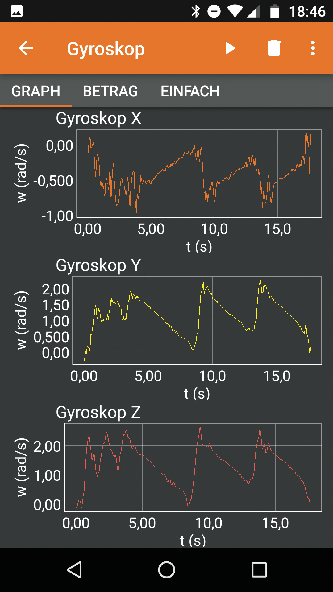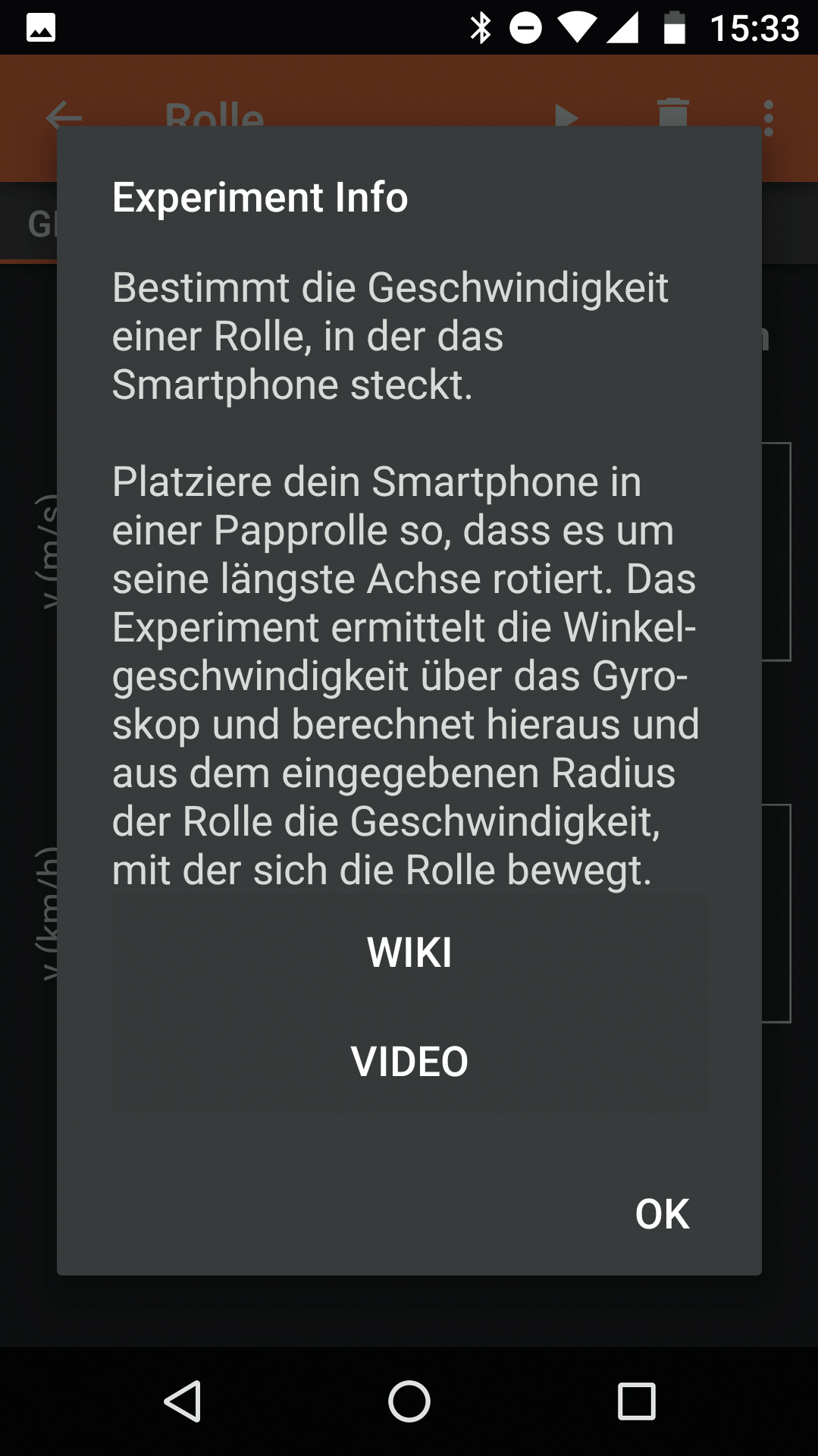 Um erst einmal die Bedienung kennenzulernen, empfiehlt sich einfaches Ausprobieren. Das kann zum Beispiel so aussehen: auf einen Stuhl mit Drehgestell setzen, aus der Rubrik „Sensoren“ den Eintrag „Gyroskop“ auswählen, Startpfeil antippen und losdrehen. Auch ohne den physikalischen Hintergrund zu studieren, erlebt man dabei ganz praktisch, wie die Kurven auf dem Handy-Display mit der Drehbewegung zusammenhängen. Falls auch ein Luftdrucksensor in dem Mobiltelefon steckt, könnte ein Aufzug das nächste Versuchsobjekt sein: einsteigen, Rubrik „Alltag“ und dort den Eintrag „Aufzug“ wählen, Startpfeil antippen und losfahren.