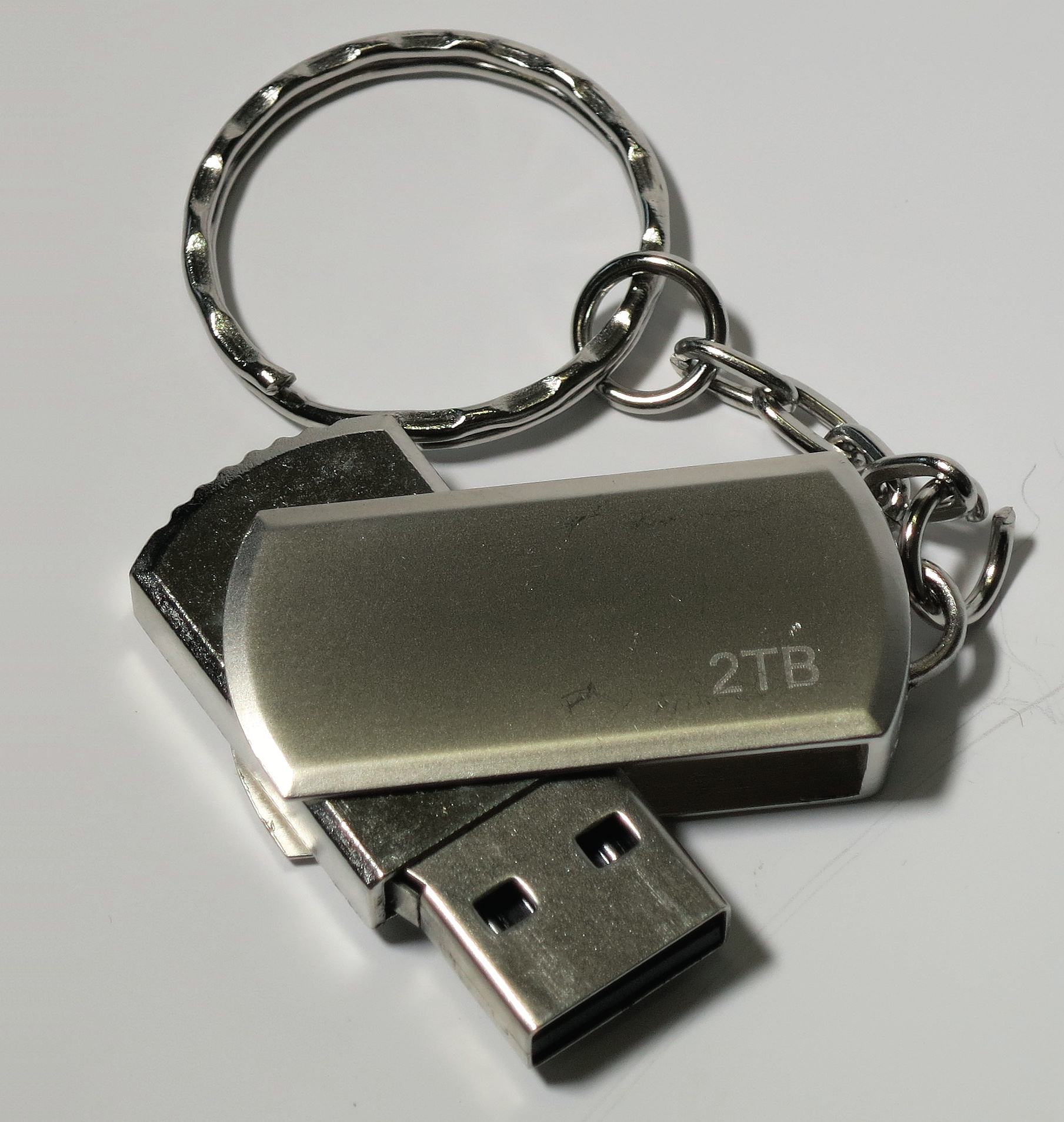 Wir haben einen solchen Stick bestellt, er entpuppte sich erwartungsgemäß als Fälschung: Nach unserem Wissen ist es bislang technisch und wirtschaftlich unmöglich, USB-Sticks in der angebotenen Bauform für unter etwa 500 Euro mit 2 Terabyte Flash-Speicher zu bestücken. Die billigsten 2-TByte-SSDs kosten 500 Euro, der einzige uns bekannte USB-Stick mit 2 TByte rund 1300 Euro (Kingston DataTraveller Ultimate GT 2TB). Letzterer ist auch deutlich größer als die „2TB“-Offerten bei Amazon, weil sonst die für 2 TByte nötigen Flash-Chips schlichtweg nicht hineinpassen. Das Flash-Medium mit der aktuell höchsten Packungsdichte ist die MicroSD-Karte mit 400 GByte von SanDisk, die 200 Euro kostet.