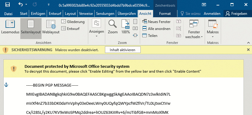 ¯!!! In der Regel verbreiten Kriminelle Ransomware über E-Mails mit einem manipulierten Dateianhang. Oft handelt es sich dabei um vermeintliche Rechnungsmails mit einem Word-Dokument im Gepäck. Mit dem alleinigen Empfang der Mail passiert erst mal nichts.