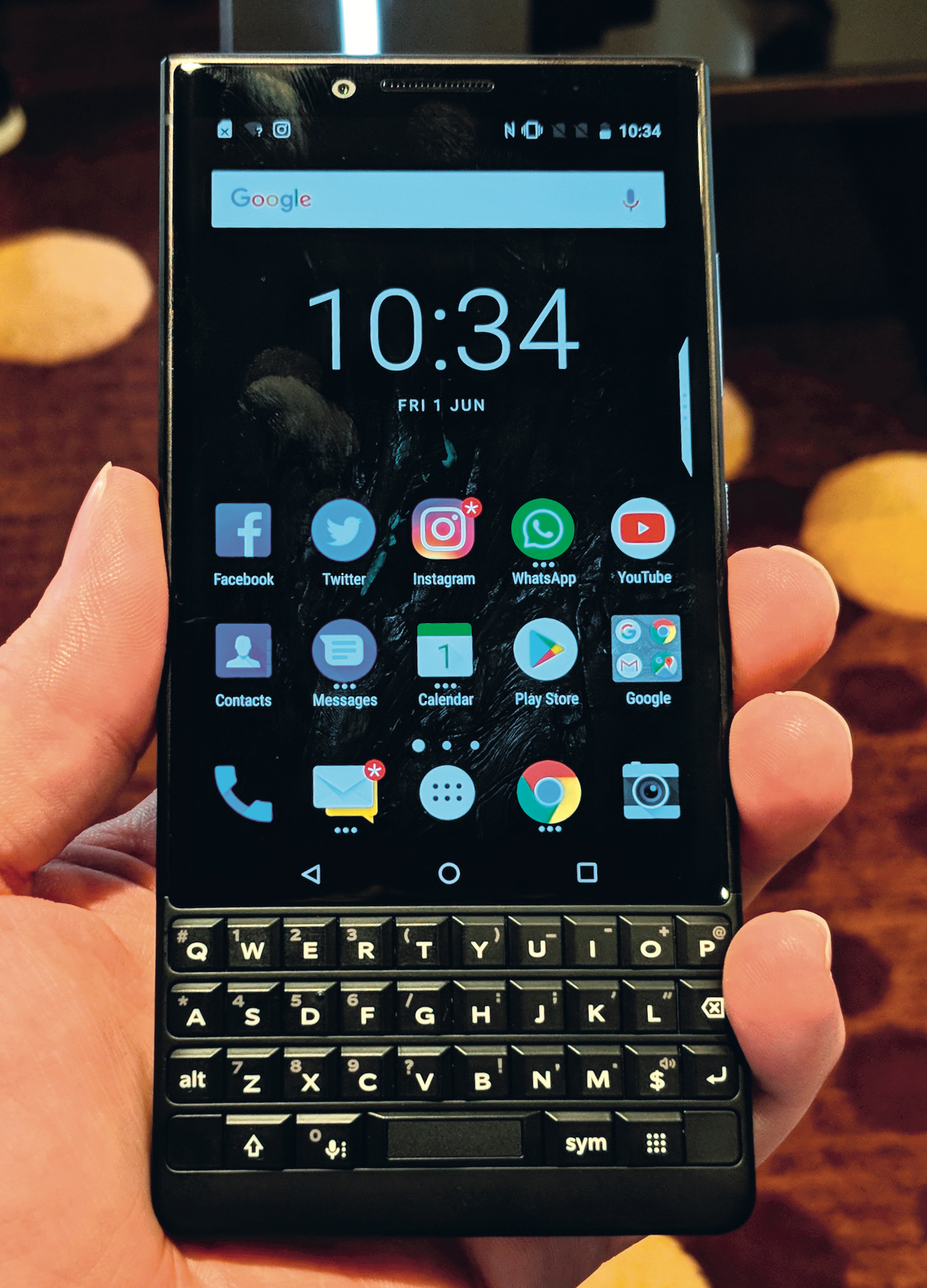 Eine neue matte Tastatur-Oberfläche erleichtert allgemein die Lesbarkeit. Die Tastatur reagiert weiterhin auch kapazitiv auf bloße Berührungen mit dem Finger, sodass wie bei Software-Tastaturen Wörter zusammengewischt werden können. Die letzte Tastenreihe füllt nun ebenfalls die komplette Gehäusebreite und kann für Gesten mitbenutzt werden. In der Leertaste versteckt sich der Fingerabdruckscanner. Daneben befindet sich die Speed-Taste. Drückt man die zusammen mit einem Buchstaben, wird die damit verknüpfte App gestartet. Bislang war das nur vom Startbildschirm aus möglich, beim Key2 funktioniert das auch bei laufenden Programmen. Die Sondertaste an der Seite des Geräts verwechselt man dank des nun hervorgehobenen Power-Knopfes kaum noch mit diesem.