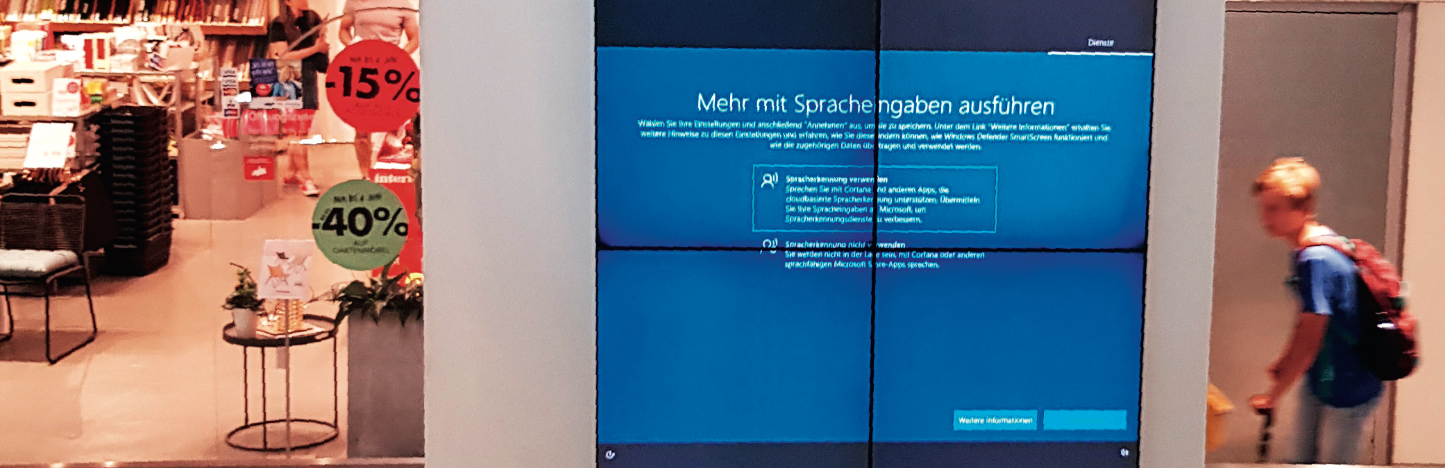 – der, der Windows konfiguriert und die Ausrollung freigegeben hat – gut, das Update lässt sich ja gar nicht mehr verhindern, sobald die Displays im Internet hängen,