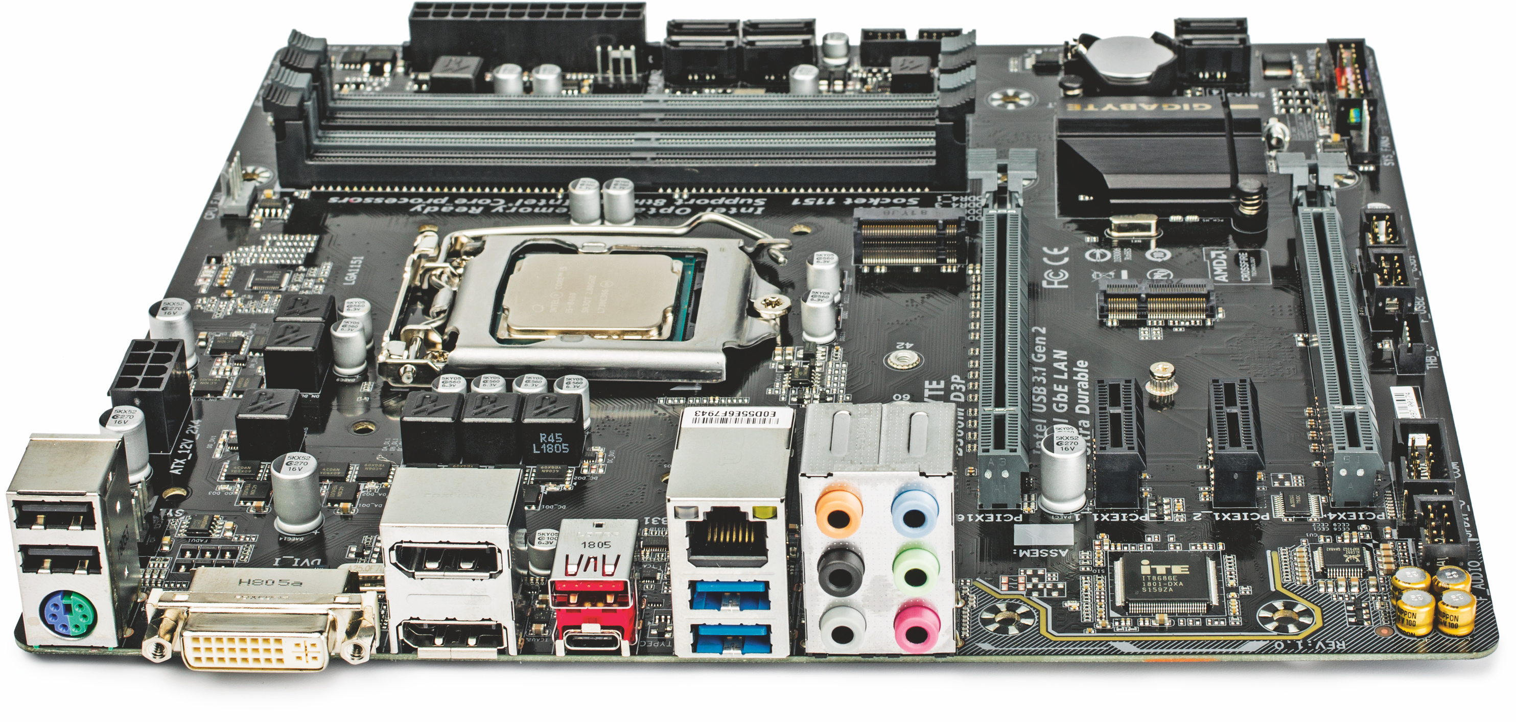 Mainboards mit mehr als einem DisplayPort (DP) haben Seltenheitswert. Doch nur per DP 1.2 steuert der Grafikprozessor aktueller Intel-CPUs auch 4K-Monitore mit flimmerfreier Bildrate von 60 Hz an. Das Gigabyte B360M D3P hat zwei DP-Buchsen und empfiehlt sich damit für leise, sparsame Bürocomputer, die feine Details auf großer Bildschirmfläche darstellen sollen.