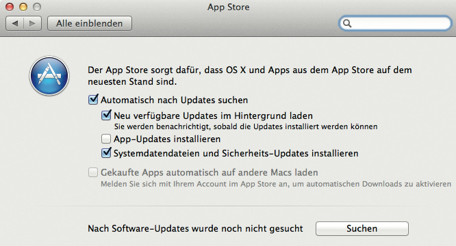 ¯!!! Ja, diese Möglichkeit gibt es. Sie finden sie in den Systemeinstellungen im Bereich „App Store“. Dort können Sie separat bestimmen, ob Updates für das Betriebssystem und Apps automatisch geladen werden sollen. Das gilt übrigens ebenso für neuere Versionen von OS X und macOS.