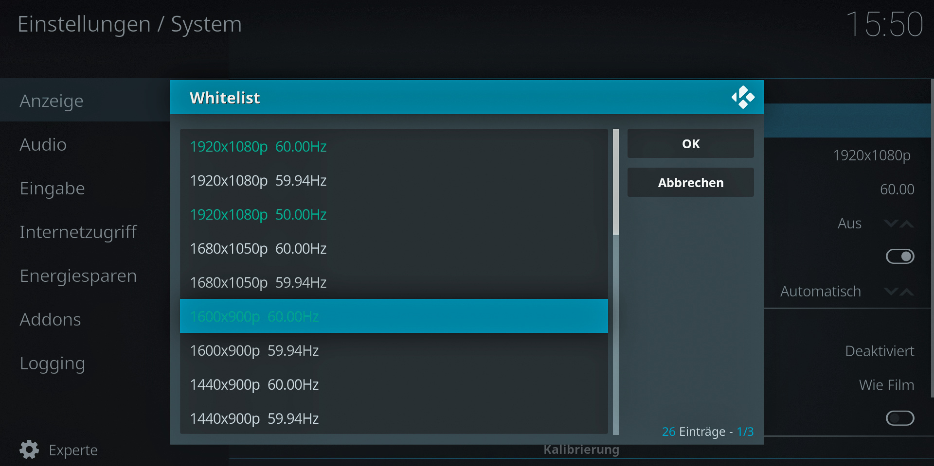 Kodi: Bildwiederholfrequenz-Automatik kaputt?