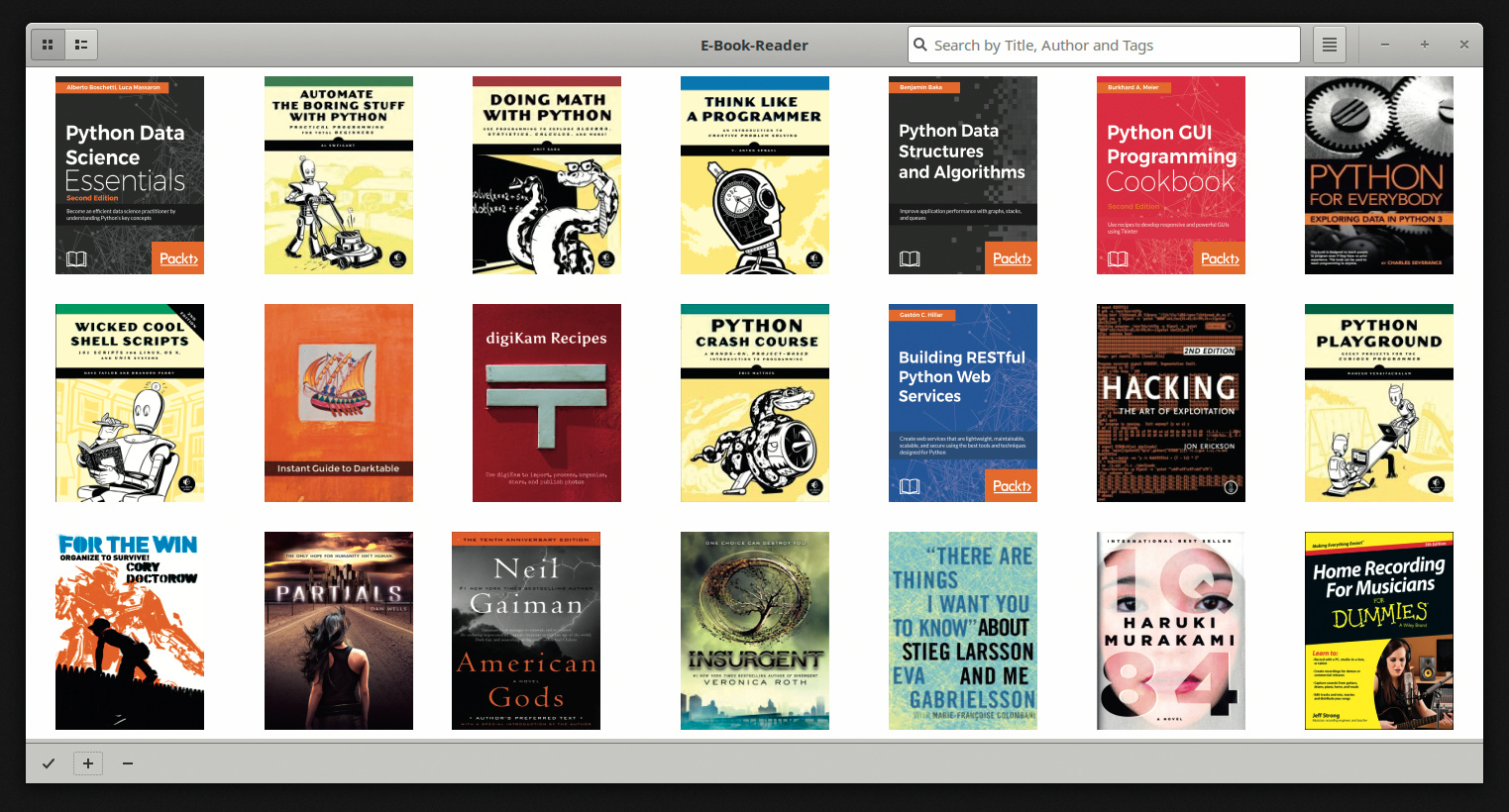 Bookworm zeigt die verfügbaren E-Books in einer Übersicht – wahlweise im Cover-Raster oder als Liste. Ein oder mehrere Bücher kann man hier direkt importieren oder löschen. Ein ganzes Verzeichnis mit digitalen Büchern hinterlegt man aber besser in den Einstellungen. Das Programm kommt mit den Formaten Epub, Mobi, PDF sowie den bei digitalen Comics verwendeten Formaten CBR und CBZ zurecht.