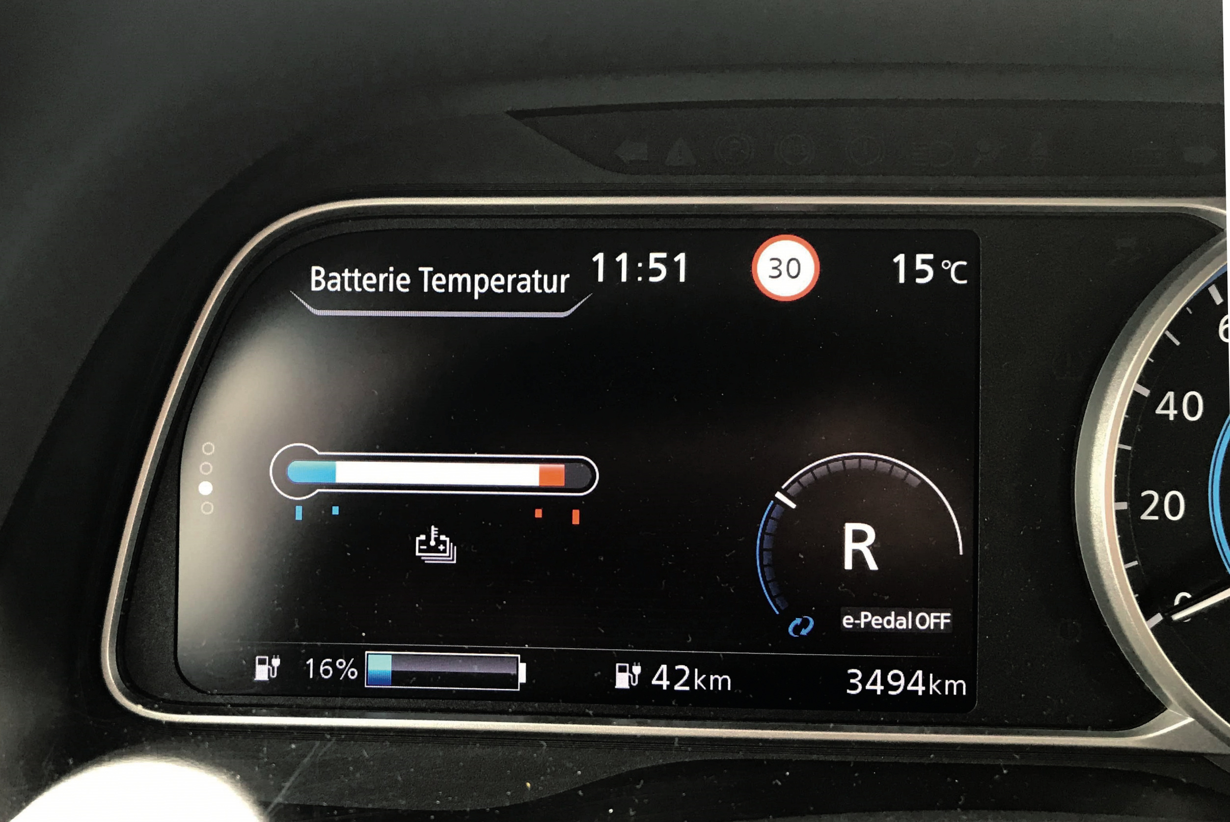 Die stärkere Batterie sorgt nicht automatisch dafür, dass man auf Langstrecken schneller ans Ziel kommt: Da ist zum einen die Reichweite, die man mit einer vollgeladenen Batterie an einem Stück zurücklegen kann. Die ist im direkten Vergleich zum alten Leaf deutlich gestiegen. Zum anderen gibt es die Strecke, die man beispielsweise innerhalb von 12 Stunden zurücklegen kann – und da kommen die Ladevorgänge ins Spiel. Auf Fernstrecken kommt man nur mit der Schnellladefunktion zügig voran. Das Problem: Lädt die Batterie trotz Schnellladesäule statt mit 50 kW nur mit 15 kW, um die Erwärmung des Akkus zu begrenzen, wird aus dem eigentlich kurzen Boxenstopp ein mehrstündiger Aufenthalt.