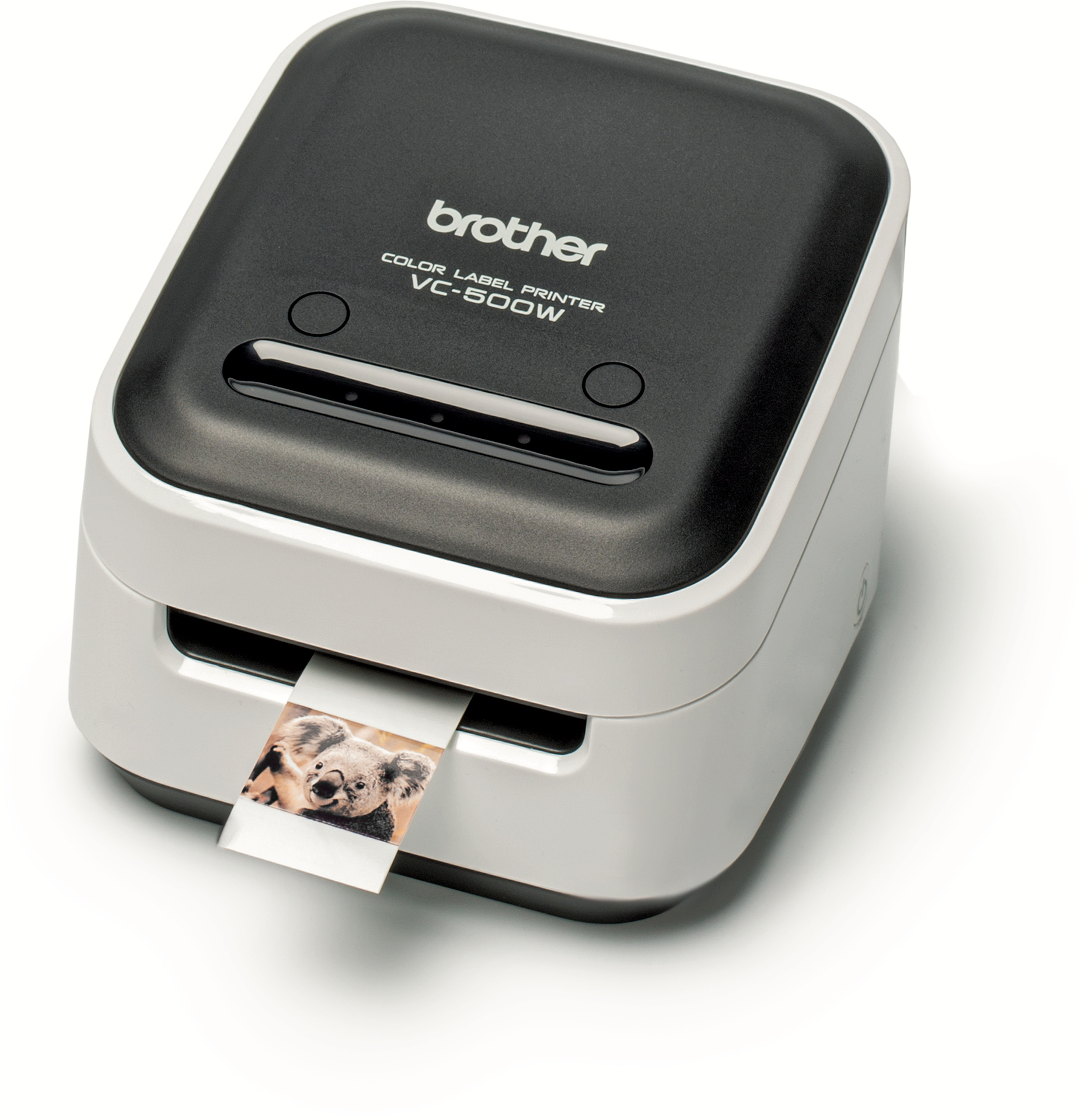 Brothers Etikettendrucker VC-500W überträgt ohne Tinte bunte Schriften, Logos und sogar Fotos auf einen selbstklebenden Streifen Zink-Papier.