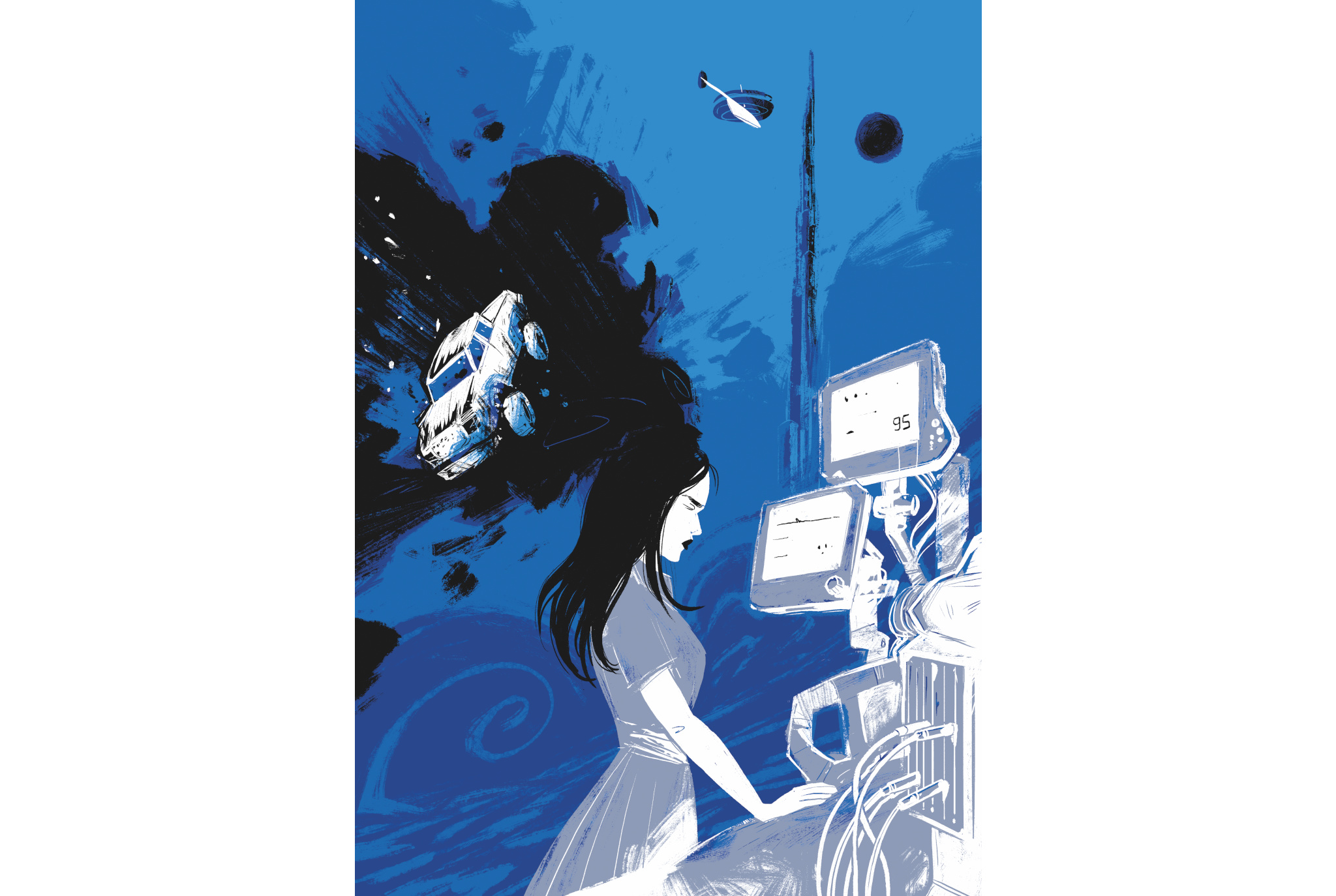 Bills Trainingshelm begann zu pulsieren. In weichen, massierenden Bewegungen schmiegte das integrierte Neuro-Interface sich seinem Gehirn an. Ein verwischter Lufthauch im Gesicht. Ameisen trabten seine Arme entlang bis zu den Fingerspitzen. Ein zartes Kribbeln in der Wirbelsäule. Der Helm vibrierte jetzt stärker – eine heiße Welle wie nach einem Adrenalinstoß überrollte Bill. Er hatte das Gefühl, sachte vor der riesigen Burj Khalifa zu landen, dem Schauplatz der Simulation. Gleichzeitig wusste er, dass er in Phantom City als Ausbilder vor seinen Kadetten saß und sich nicht rührte.