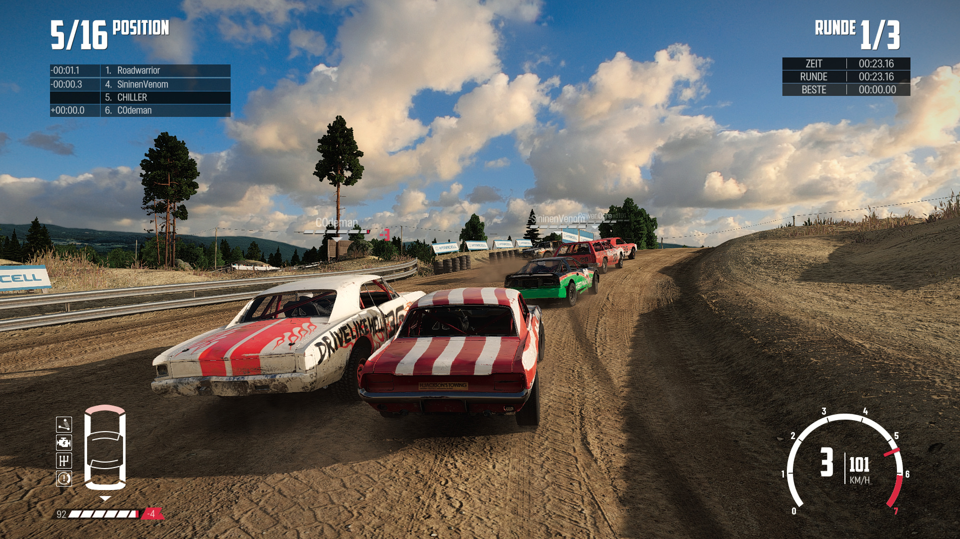 Nach langer Entwicklungszeit schickt das finnische Studio Bugbear sein Rennspiel auf die Schotterpiste. Der Spieler wählt aus 22 aufwendig gestalteten Fahrzeugen, die von amerikanischen Muskelmaschinen über elegante Europäer bis zu japanischen Flitzern reichen. Deren Leistung lässt sich mit neuen Fahrzeugteilen aufrüsten. Vor allem an der Panzerung sollte man nicht sparen, sonst wird aus einem stolzen Mustang in wenigen Minuten ein Klumpen moderner Kunst. Die hauseigene Engine ROMU beeindruckt mit ihrer Grafik und Schadensphysik. Einzig auf Regen und Schnee muss man verzichten.