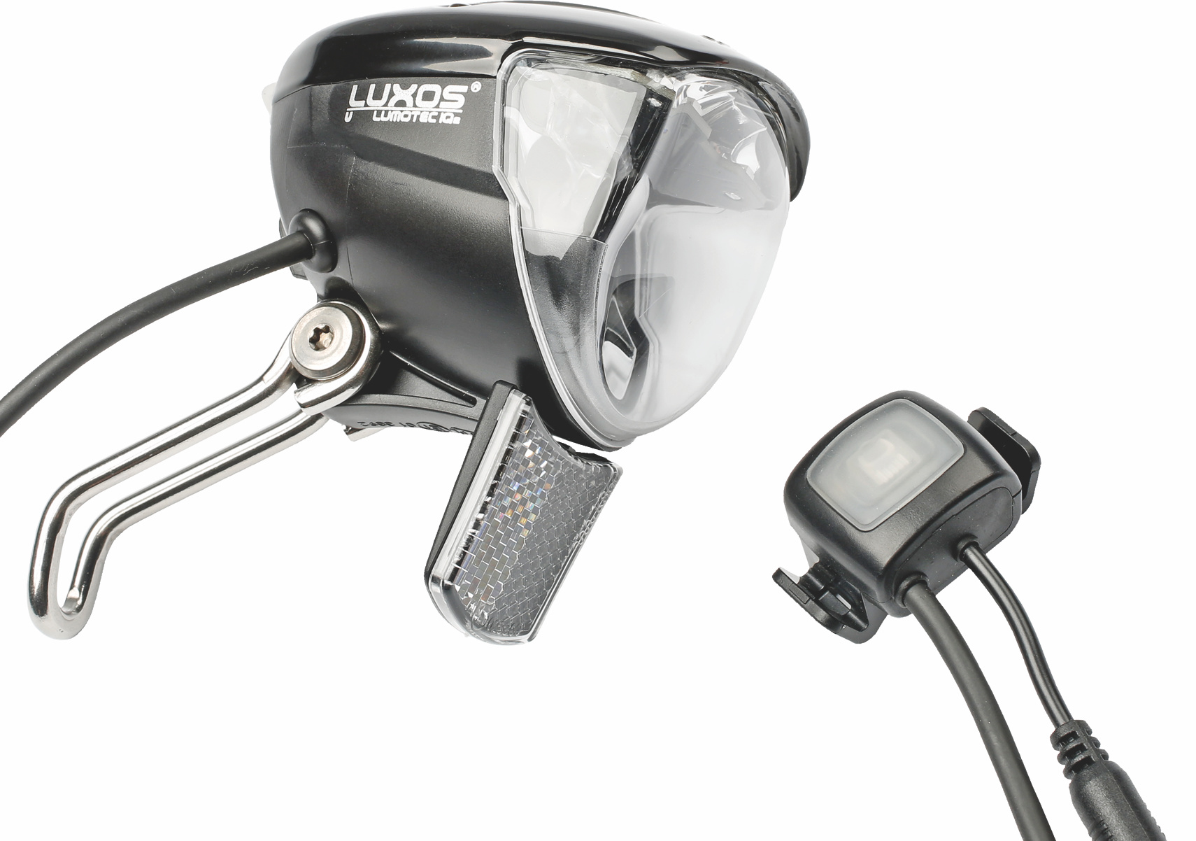 Der besonders helle Fahrradscheinwerfer Luxos U von Busch + Müller bringt bis zu 90 Lux auf die Straße oder lädt das Smartphone des Fahrers.