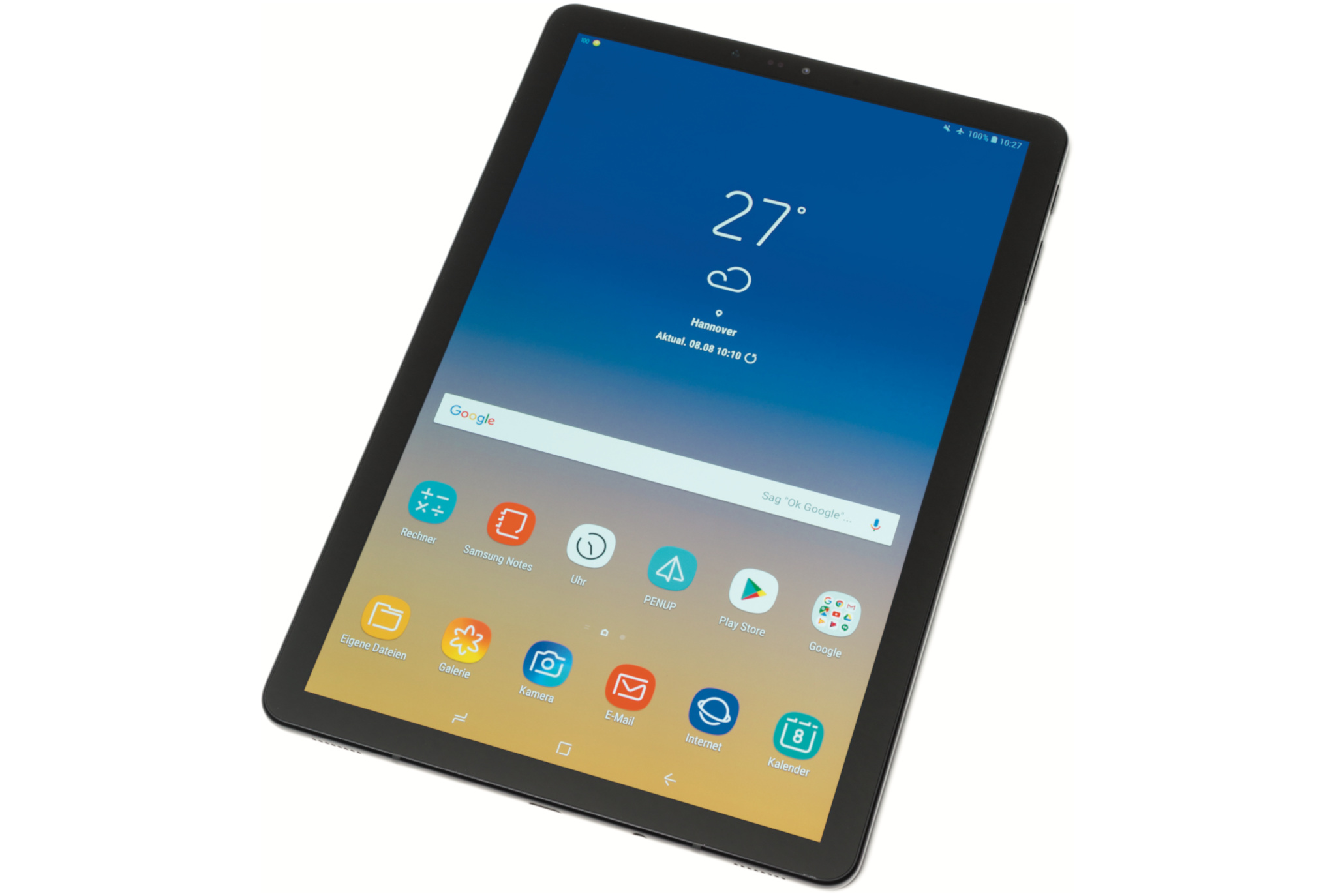 Das Samsung Galaxy Tab S4 legt im Vergleich zum Vorgänger noch mal nach und stellt außer dem beiliegenden Stift und der optionalen Tastatur jetzt auch einen Desktop-Modus bereit, der ein Arbeiten wie am Notebook ermöglichen soll. Eine Abkehr vom Entertainment bedeutet das nicht. Im Gegenteil, Samsung setzt nun wieder auf ein breiteres, filmfreundlicheres Format mit 16:10-Display. Die vier Lautsprecher mit Dolby-Atmos-Zertifizierung und das schicke AMOLED-Display sind vom Vorgänger geblieben.