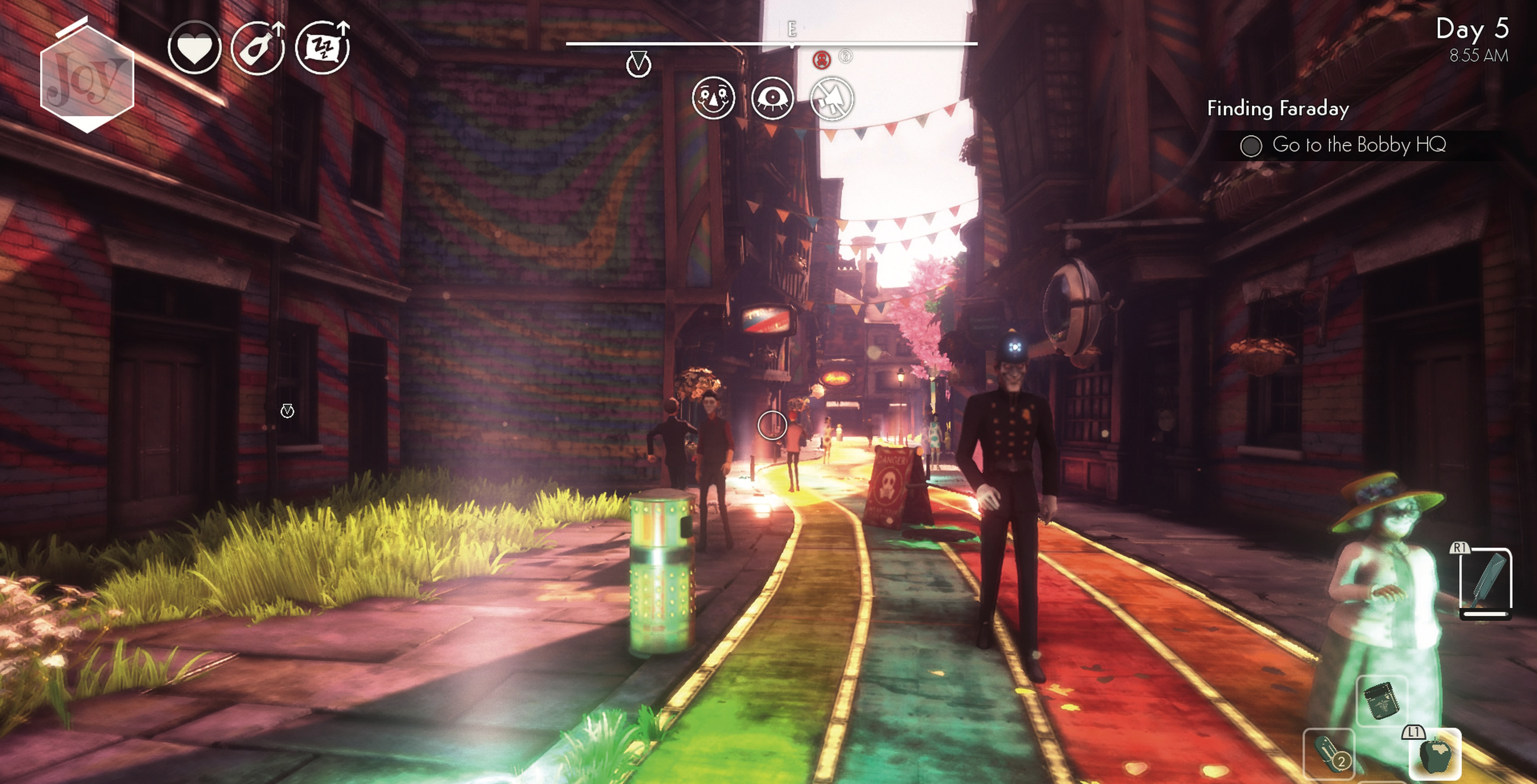 1964 ist England von den Nazis besetzt. Im Action-Adventure „We Happy Few“ schluckt die Bevölkerung Drogen, um der Realität zu entkommen – bis der Spieler seine Pillen absetzt.