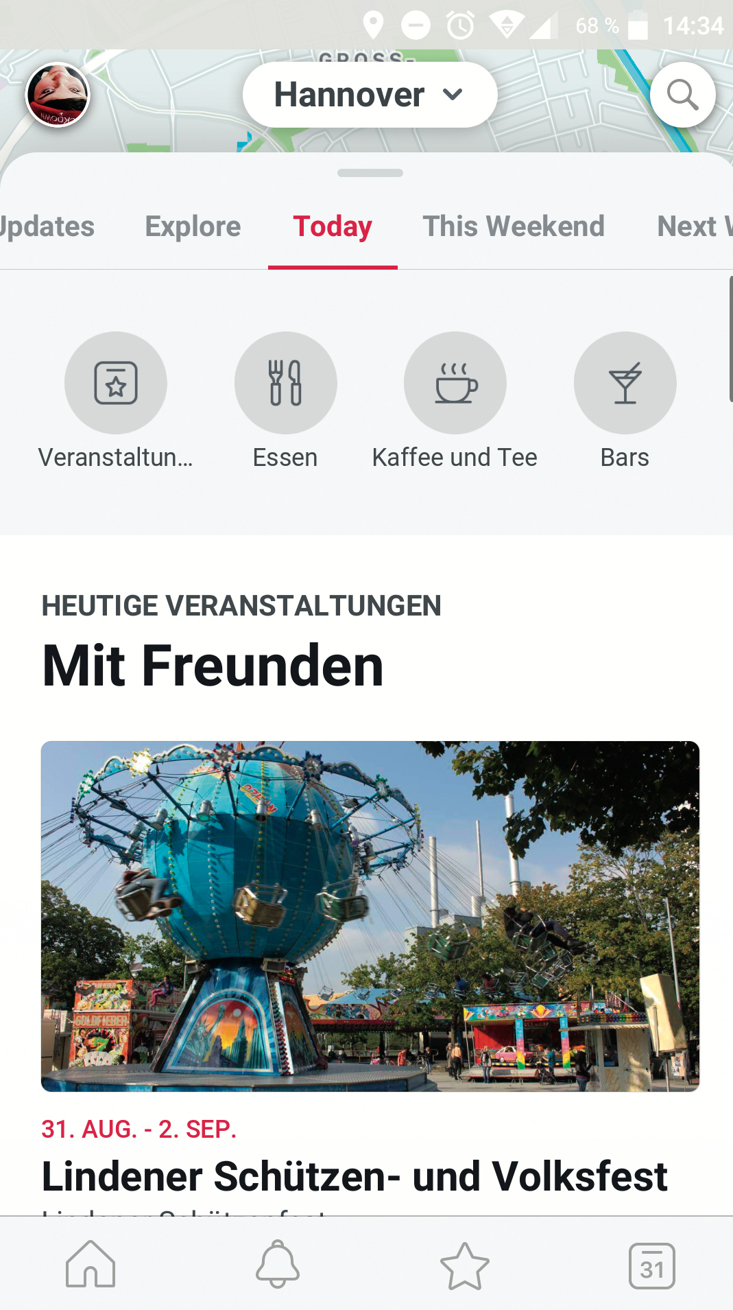 Facebooks Local-App greift auf den Standort des angemeldeten Nutzers zu und zeigt ihm außer Veranstaltungen auch Sehenswürdigkeiten und Restaurants an. Außer allgemeinen Empfehlungen sieht man hierin gezielt Bewertungen oder bevorstehende Teilnahmen von Freunden.