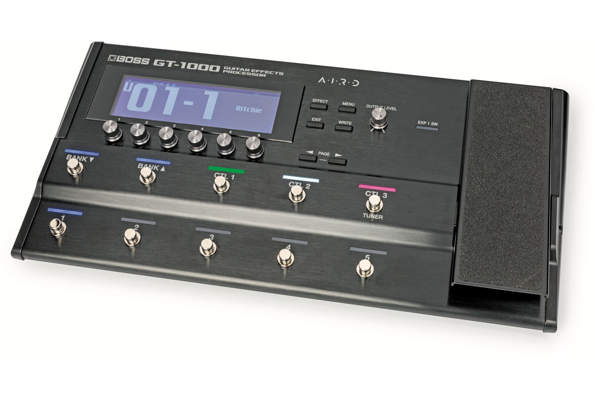 Den Markt der klassischen Multieffekt-Boards teilt sich Modelling-Pionier Line6 mit dem Newcomer Headrush und eben Boss, Tochter des japanischen Instrumentenbauers Roland und seit Jahrzehnten bekannt für seine bunten Einzeleffekt-Tretminen. Der GT-1000 ist mit einem Straßenpreis von 850 Euro das günstigste Gerät unter den High-End-Pedalboards mit Verstärker-Emulation, die beiden Konkurrenten kosten jeweils knapp 1000 Euro. Zudem ist der GT-1000 der einzige mit einem Bluetooth-Anschluss. Aus diesem Grund haben wir ihn näher unter die Lupe genommen.