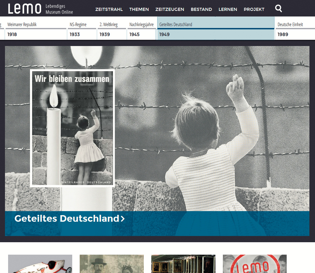 Mit dem Projekt Lebendiges Museum Online (LeMO) stellen die Stiftung Haus der Geschichte der Bundesrepublik Deutschland und das Deutsche Historische Museum einen Anlaufpunkt für Geschichtsinteressierte bereit.