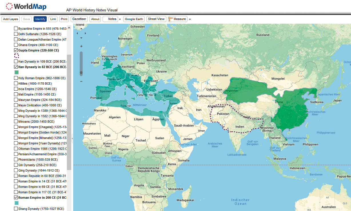 Die fertigen Karten kann man anschließend einem definierten Nutzerkreis, etwa einem Kurs, oder der Allgemeinheit zugänglich machen. Ein gutes Beispiel für die vielfältigen Möglichkeiten des Tools sind die AP World History Notes Visual, eine Sammlung von Karten historischer Reiche, Orte und Handelsrouten. (mon@ct.de)