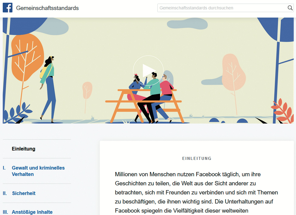 Doch was ist mit Beiträgen, deren Inhalt nicht in den Anwendungsbereich des NetzDG fällt? Bislang beruft sich Facebook auf die eigenen inhaltlichen Regeln („Gemeinschaftstandards“) sowie die Nutzungsbedingungen („Richtlinien“), die dem Konzern weitgehende Freiheiten bei dem Umgang mit Nutzer-Postings auf der Plattform gewähren sollen.