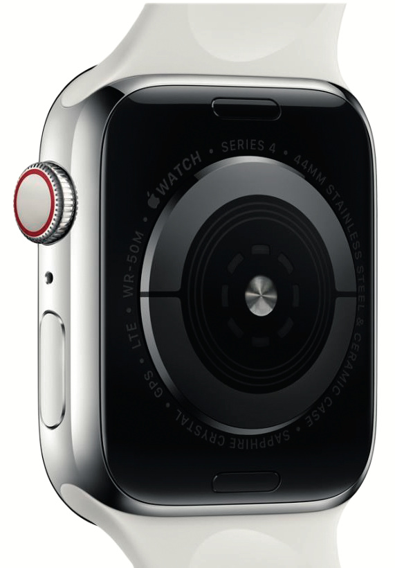 Die Apple Watch Series 4 ist seit dem 21. September im Handel. Das besondere an der Uhr ist ein integrierter Mini-EKG (Elektrokardiograf). Der Sensor erfasst die elektrische Erregung, die jeder Kontraktion des Herzmuskels vorausgeht, über Elektroden an der Rückseite und in der digitalen Krone der Uhr (Einkanal-EKG). Zur Messung legt man einen Finger an die Krone.