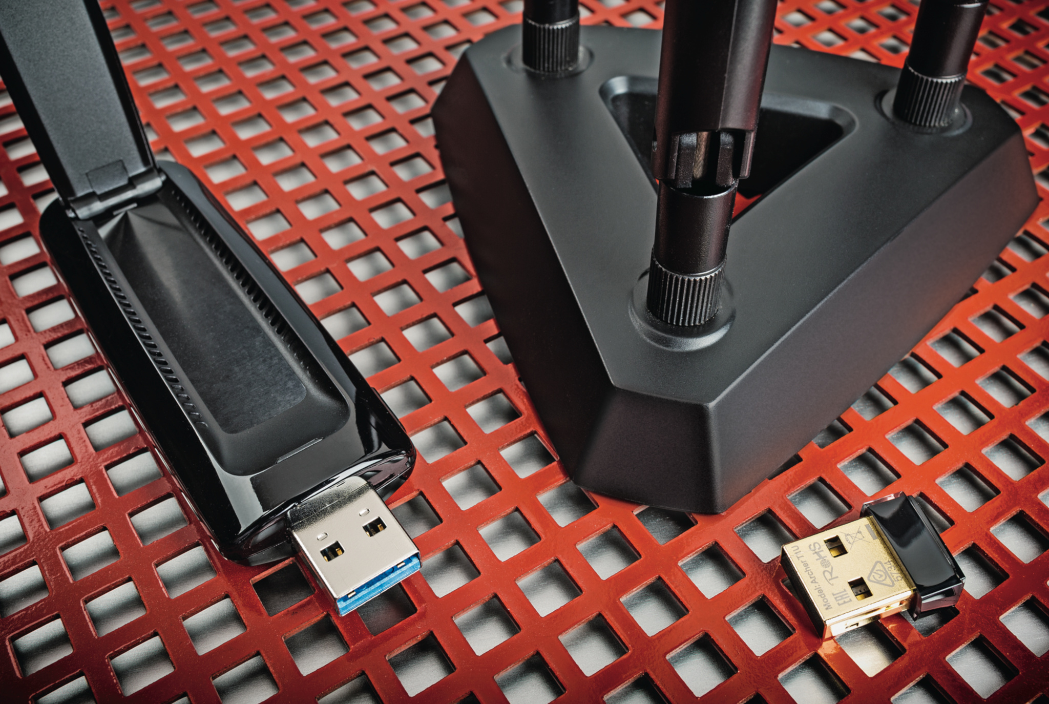 WLAN-Sticks gibt es in verschiedenen Bauformen, für stationäre PCs auch mit USB-Dock. Wer keine Hemmungen hat, den Rechner zu öffnen, kann stattdessen eine PCI-Express-Karte einbauen.