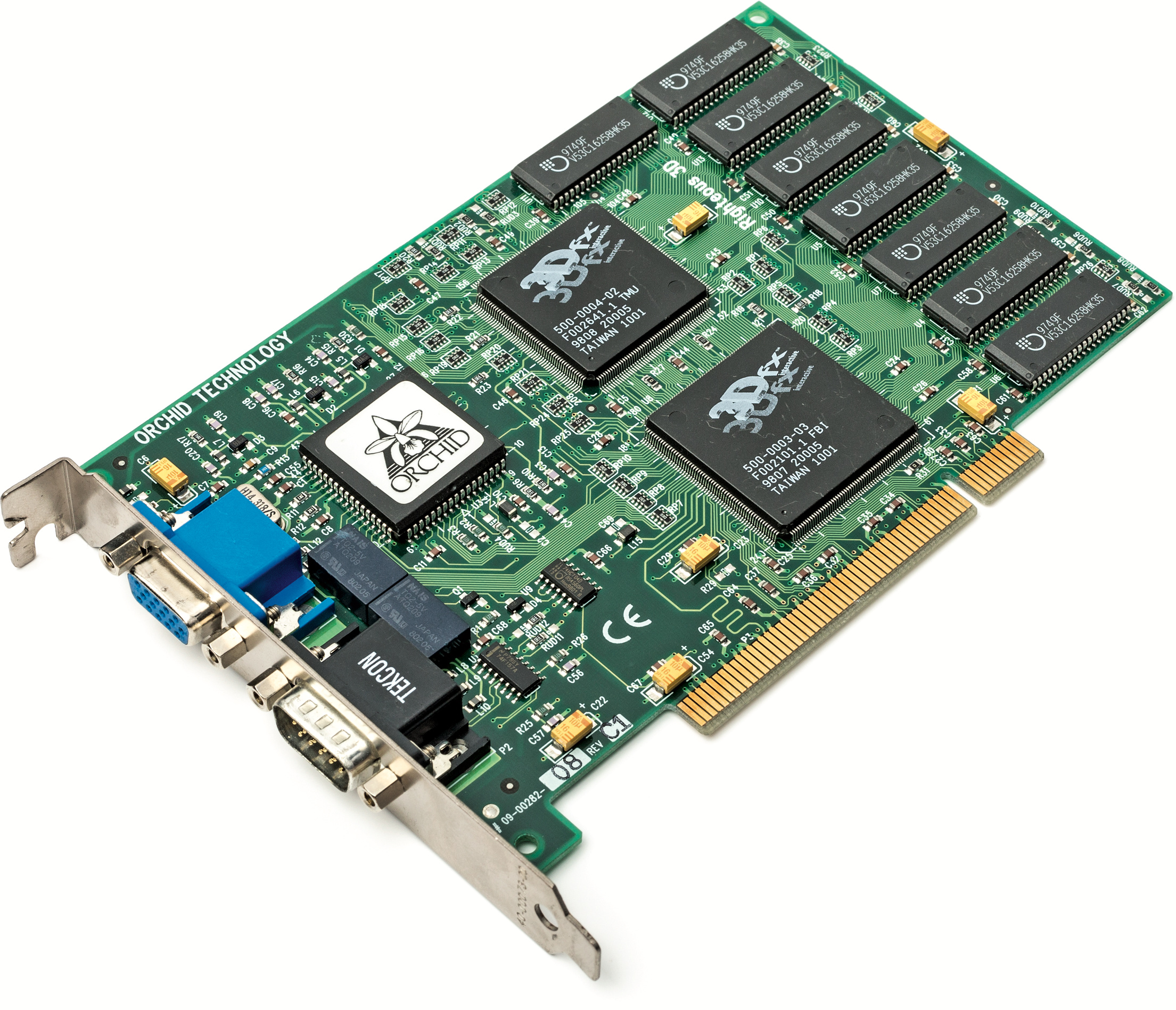 3Dfx war bei Weitem nicht die erste Firma, die 3D-Beschleunigung anbot. Seine Ursprünge hatte die Anzeige inklusive dritter Dimension im professionellen Bereich. Schon in den Achtzigerjahren wurden dort nahezu vollständige Zusatz-PCs auf Steckkarten in die Workstations integriert, um die für 3D-Berechnungen nötige Rechenleistung bereitzustellen. Der Rest der Workstation kümmert sich weiterhin um den normalen Programmablauf. Bei den 3D-Boliden, in denen die 3D-Grafik ein Zuhause fand, wurden astronomische Summen investiert. Marktführer war hier Silicon Graphics Incorporated, besser bekannt unter dem Kürzel SGI. Viele der Firmengründer aus den Kindertagen der 3D-Grafik lernten hier ihr Handwerk – auch die 3Dfx-Väter Smith, Sellers und Tarolli. Sie gründeten die Firma 3Dfx („3D Effects“) und belieferten zunächst Hersteller von Spielautomaten mit ihren Beschleunigerboards.