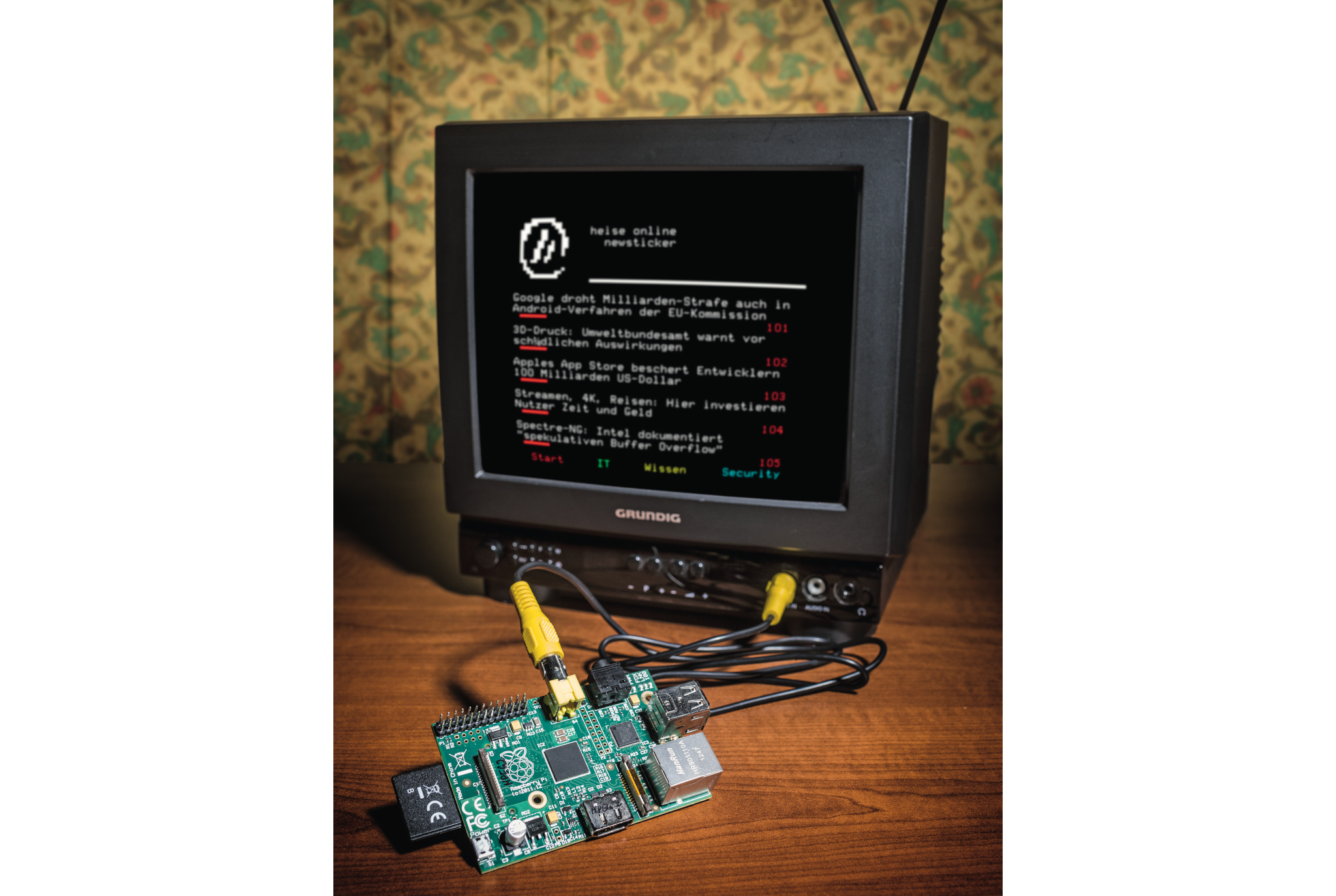 Weil einige bastelfreudige und nostalgische BBC-Zuschauer nicht auf die pixeligen Informationen verzichten wollten, entwickelten sie eine Software, um echten Teletext mit dem Raspberry Pi zu generieren. Ohne zusätzliche Hardware versorgen Sie einen handelsüblichen Fernseher mit dem heise-online-Newticker oder binden Familienmitglieder ohne Mobiltelefon und Computer an die Telegram-Familiengruppe an.