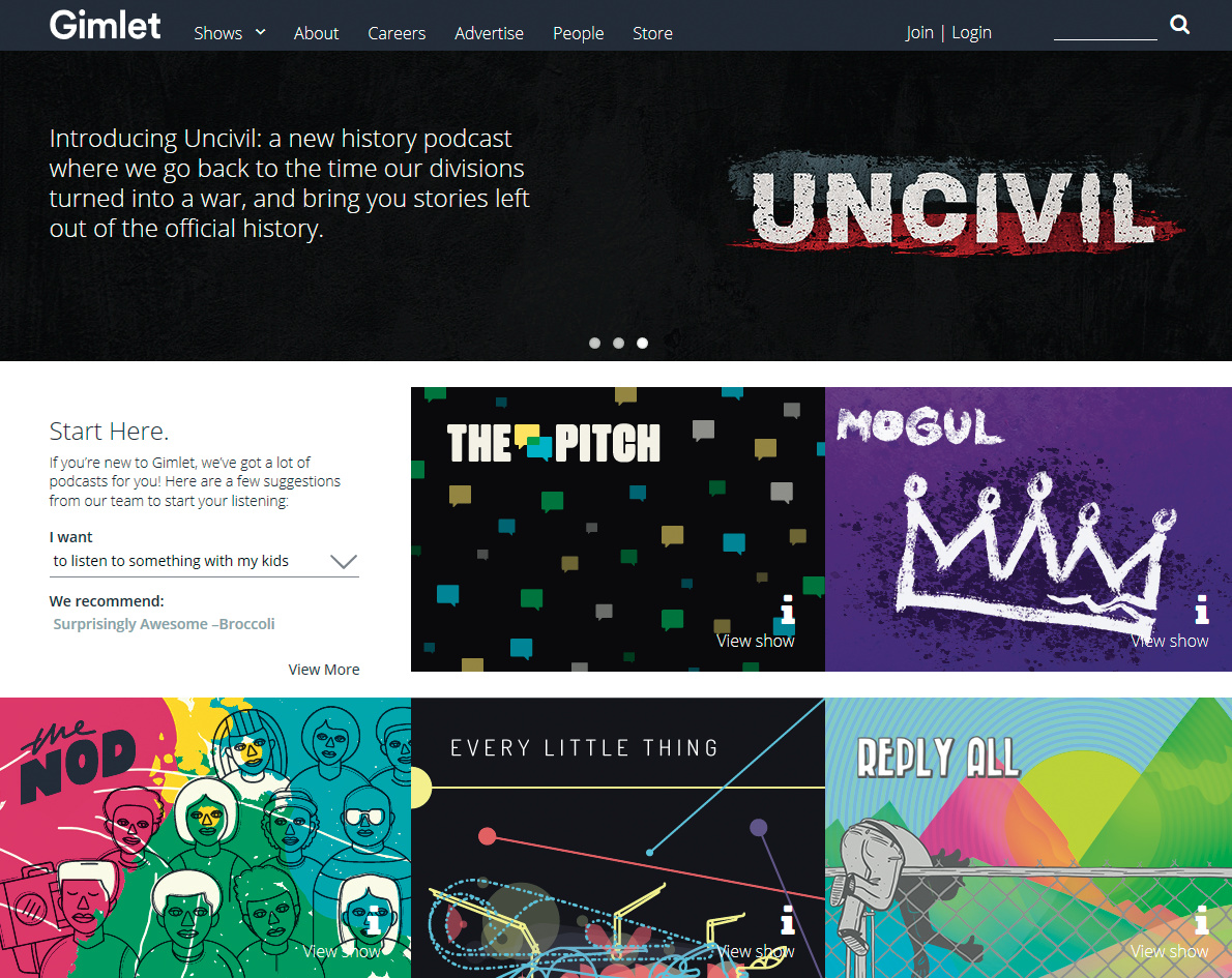 Daneben sind eine Reihe von neuen Netzwerken entstanden, die sich ausschließlich Podcasts verschreiben. Dazu zählt Gimlet, bei dem Homecoming erschienen ist. In den USA gibt es mehrere Dutzend solcher Netzwerke – auch ein Grund für den aktuellen Boom. In diesen Netzwerken bündeln Podcaster ihre Ressourcen und ihr Know-how und vermarkten ihre Kanäle gemeinsam. So entstehen neue Medienmarken mit einem hohen Qualitätsanspruch. Gefällt Ihnen ein Podcast eines Netzwerks, stehen die Chancen nicht schlecht, dass Sie auch andere Podcasts aus dieser Quelle mögen.