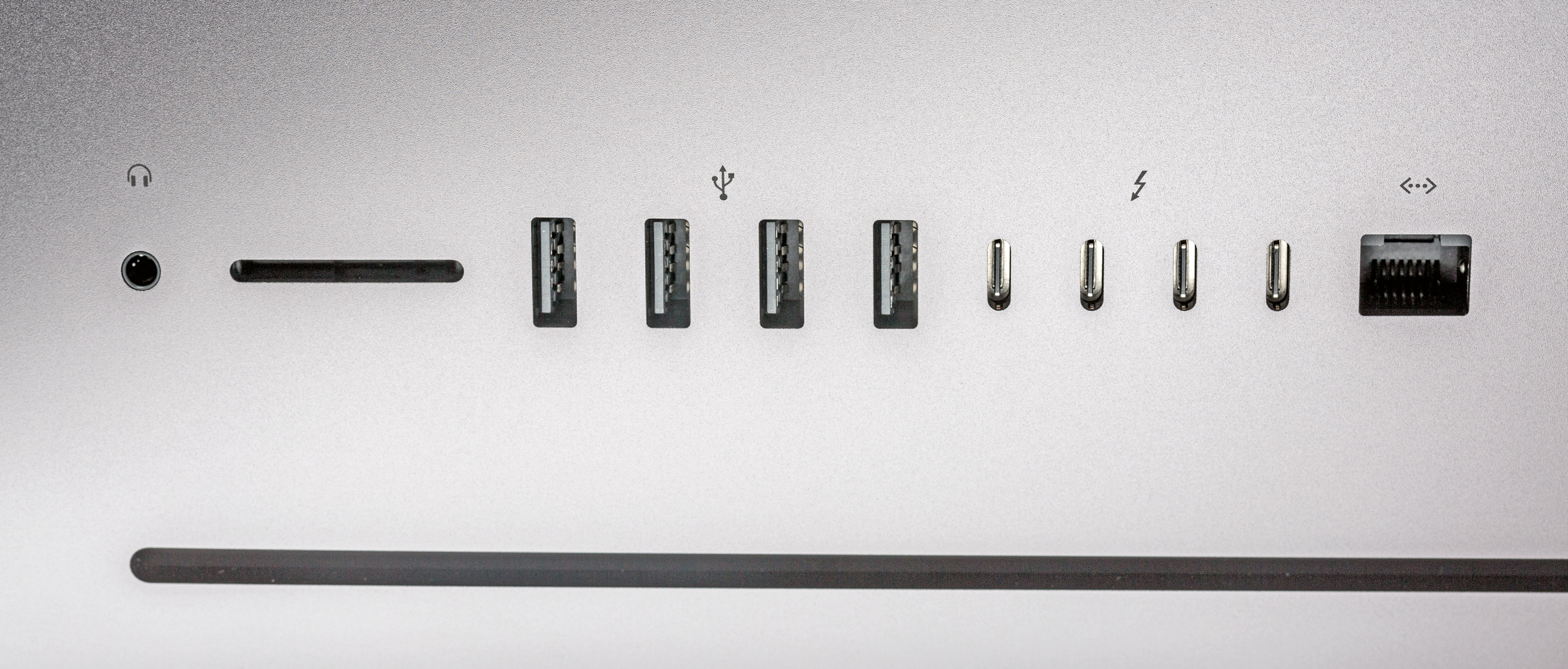 Ach, gibt’s den iMac jetzt auch in Schwarz?“ In der Tat sieht Apples neuer Pro-Rechner aus wie ein iMac, nur eben in dem vom iPhone bekannten matten Grauton, den Apple Space Grey nennt. Um den Ansprüchen der Zielgruppe gerecht zu werden, stehen Varianten mit 8 bis 18 CPU-Kernen, bis zu 4 TByte SSD-Speicher, 128 GByte RAM und aktueller Vega-56- oder -64-Grafik von AMD zur Auswahl. An Performance mangelt es also nicht. Auch preislich spielt der iMac Pro in einer anderen Liga: Das Basismodell kostet 5500 Euro, die Top-Variante mit allen Schikanen über 15.000 Euro. Da das geschlossene Gehäuse späteren Aufrüstaktionen einen Riegel vorschiebt, sollte man gleich beim Kauf die Apple-üblich teuren SSD- oder Speicher-Upgrades ordern, denn selbst das rückseitige RAM-Türchen der 27"-iMacs fehlt dem Pro. Einmal zusammengebaut, lässt sich am Gerät nichts mehr vom Nutzer verändern – es sei denn, man traut sich eine Operation am offenen iMac Pro zu, die hinter das eingeklebte Display führt.