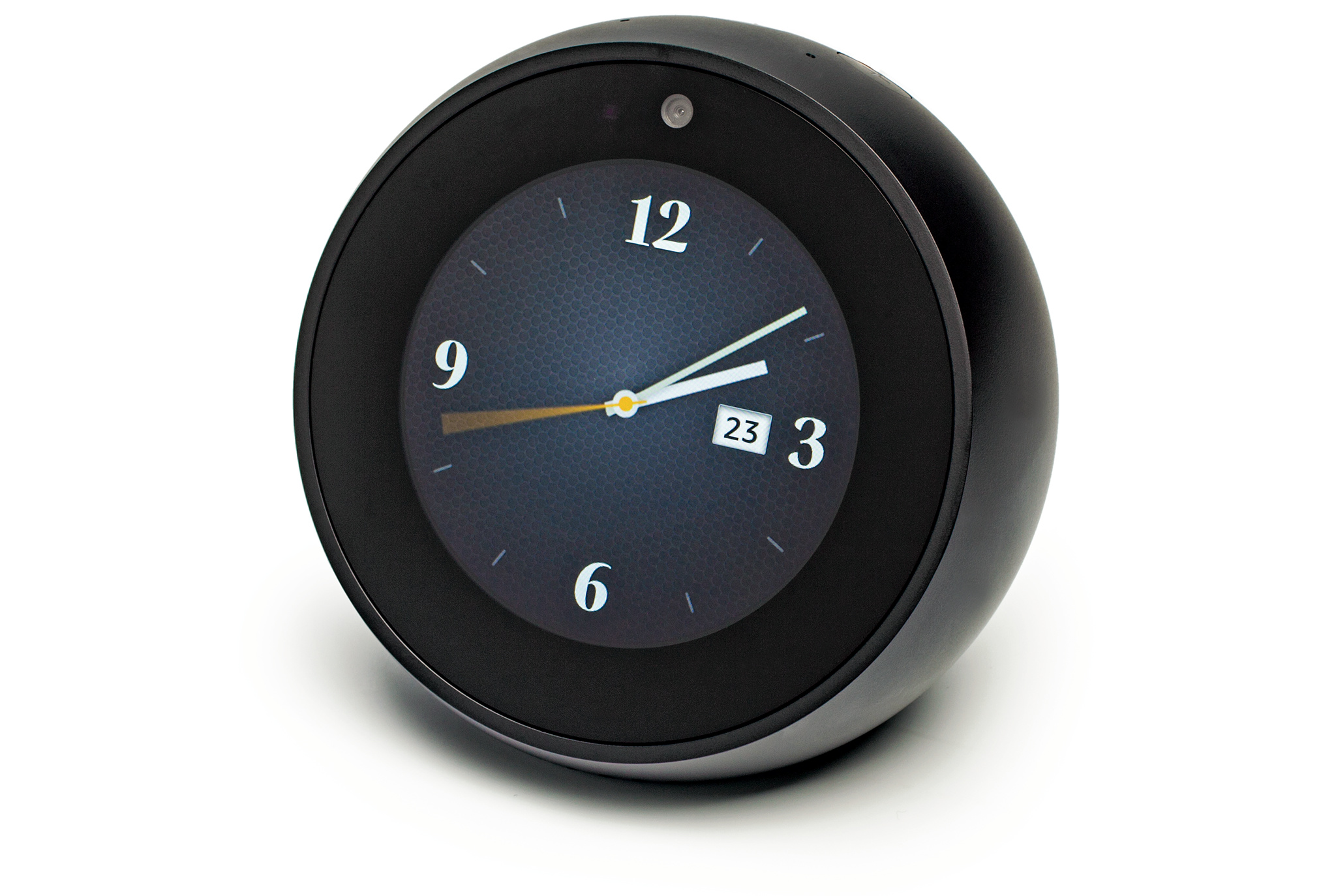 Bislang konnte man Amazons vernetzte Lautsprecher nicht gerade als Designer-Stücke bezeichnen. Das ist bei der etwa handgroßen Halbkugel Echo Spot anders: Der Spot sieht aus wie eine niedliche Uhr und wirkt deshalb auf Wohnzimmer- oder Nachttischen nicht wie ein Fremdkörper. Das runde Display mit einem Durchmesser von 6,3 cm zeigt standardmäßig die Uhrzeit – wahlweise mit virtuell-analogen oder digitalen Zifferblättern. Ebenso lassen sich aus eigenen Fotos individuelle Zifferblätter kreieren.