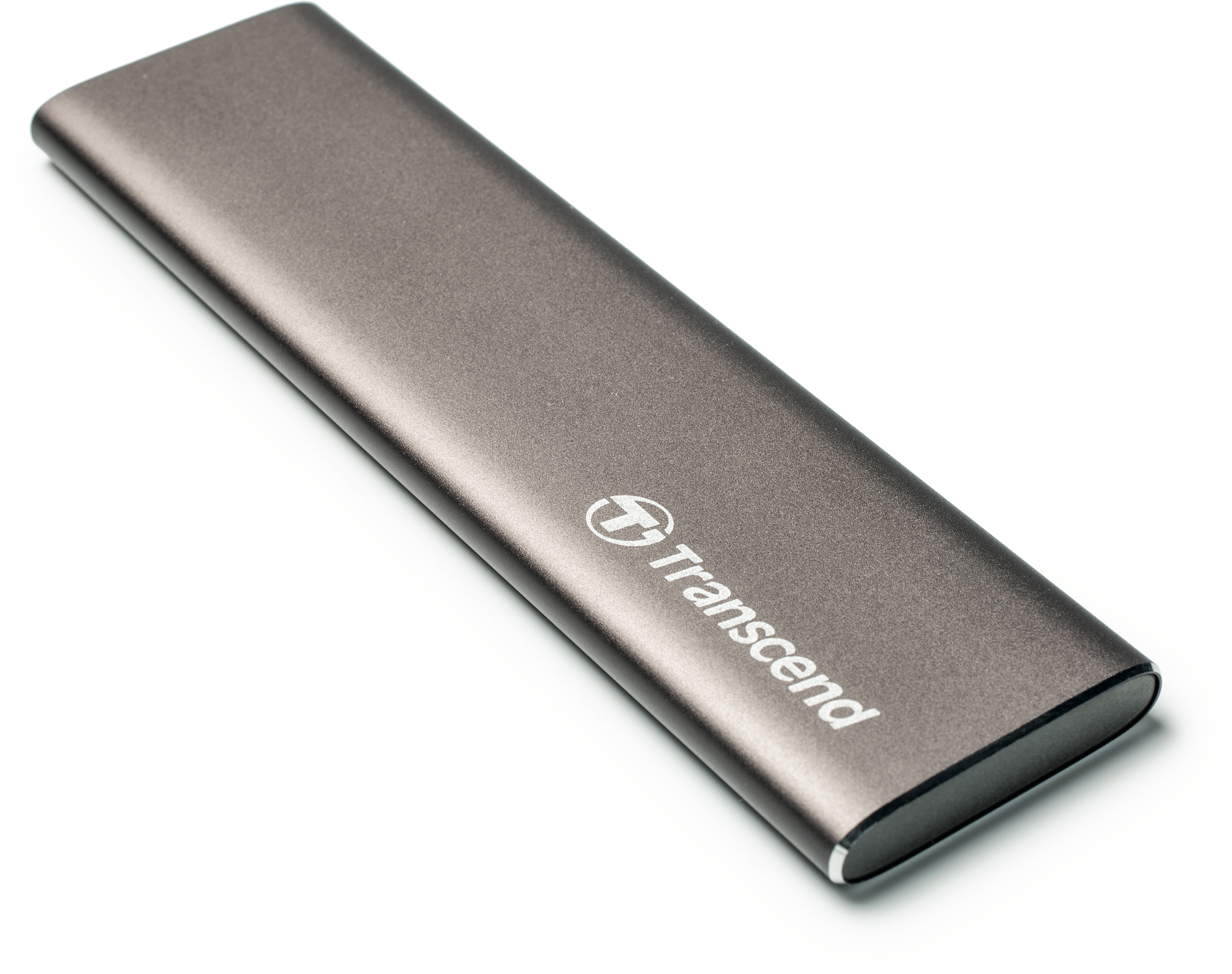 240 GByte Flash-Speicher steckt Transcend in einen edel-grauen Aluminiumkorpus mit abgerundeten Bauch- und Rückenseiten, einer Zugriffs-LED und einer USB-C-Buchse. Letztere beherrscht den Datenaustausch per USB 3.1 Gen. 2 mit bis zu 10 GBit/s.