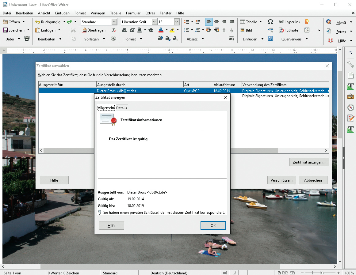 LibreOffice 6.0 verschlüsselt Dokumente auf allen Plattformen mit OpenPGP.