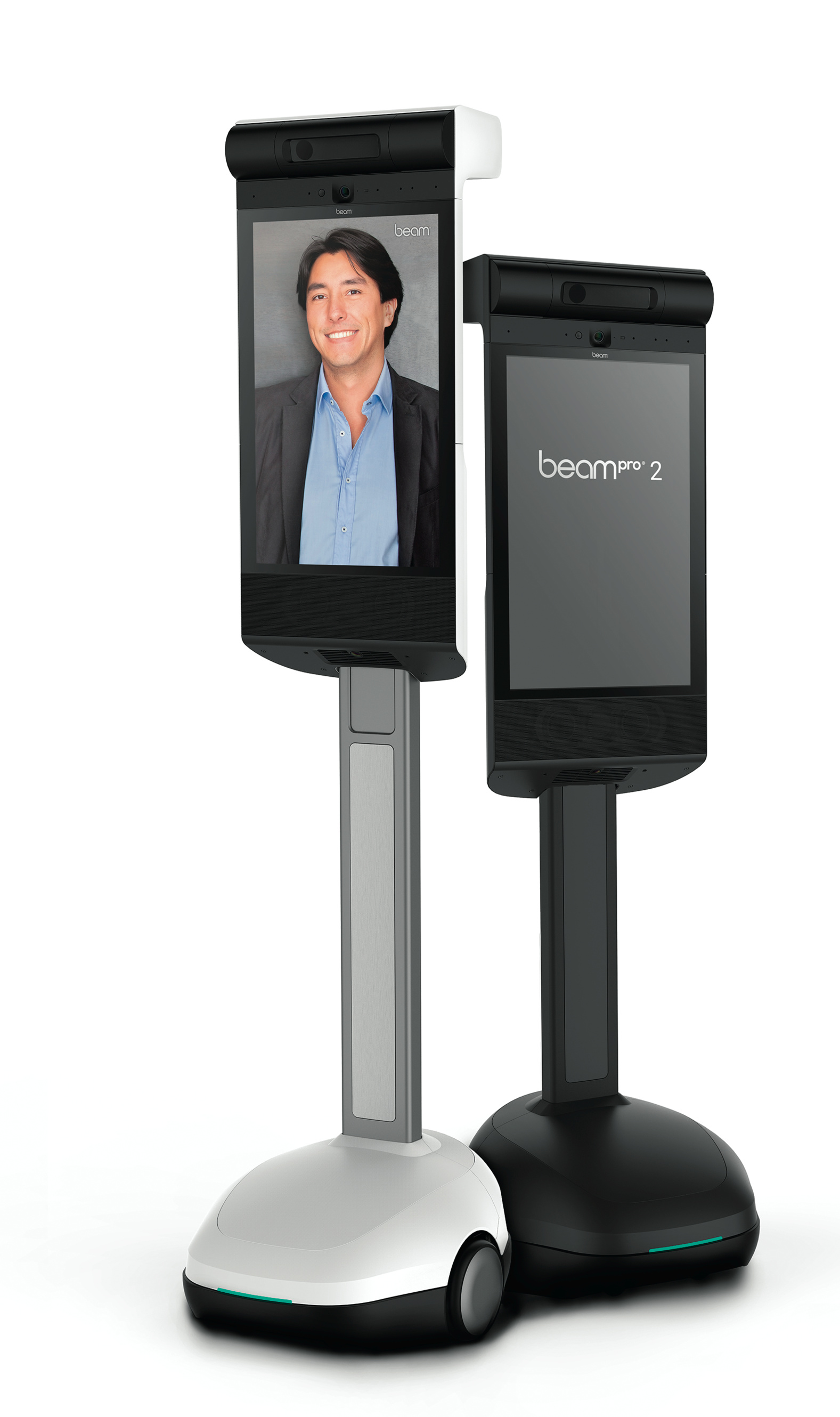 Mit dem BeamPro2 sollen Videokonferenzen attraktiver werden. Der Roboter kann fahren und den Bildschirm in der Höhe verstellen.