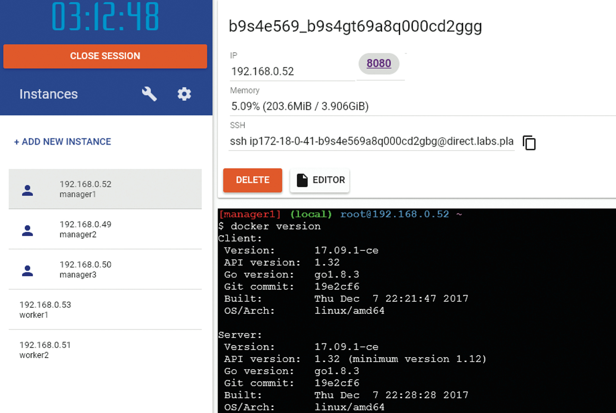 Fürs Ausprobieren von Containern ist das von der Docker Inc. finanzierte Projekt „Play with Docker“ der ideale Ort: Die Docker-Testumgebung läuft ohne Einrichtung über eine sehr intuitive Konfigurationsoberfläche im Browser. Sie startet bis zu fünf Docker-Nodes für beliebig viele Container und kennt Templates für die Simulation von Swarm-Umgebungen mit mehreren Managern und Workern.