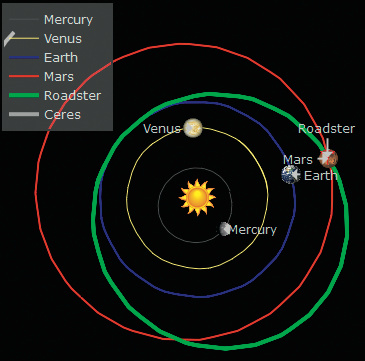 Roadster im Weltall