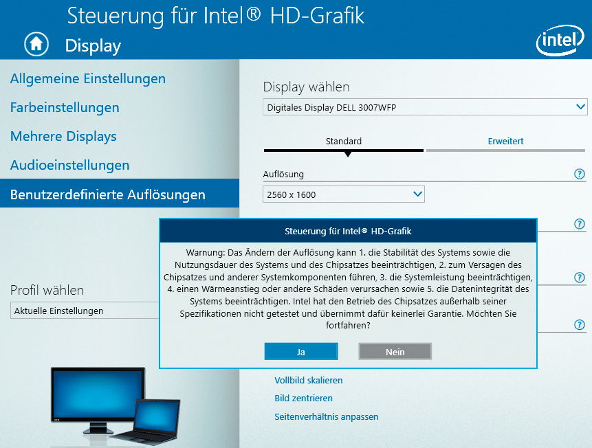 ¯??? Wie entlocke ich der Onboard-Grafik meines Intel-Systems am HDMI-Ausgang die Auflösung 2560 × 1440 Pixel für meinen Monitor? Der Intel-Grafiktreiber erlaubt hier höchstens 1920 × 1200.