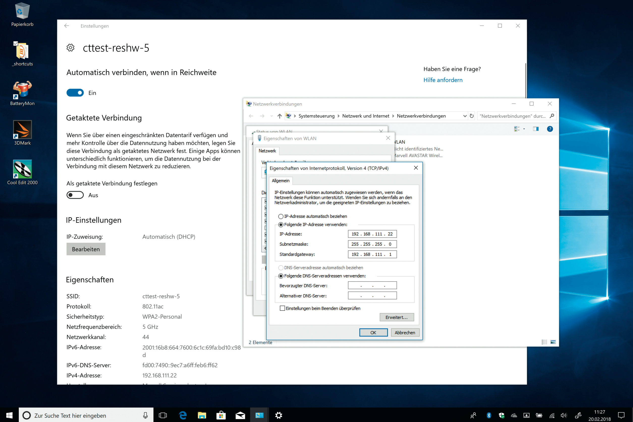 ¯??? Der Einstellungen-Dialog von Windows 10 zeigt an, dass sich mein WLAN-Adapter per DHCP eine IP-Adresse abholt, doch ich komme nicht online.