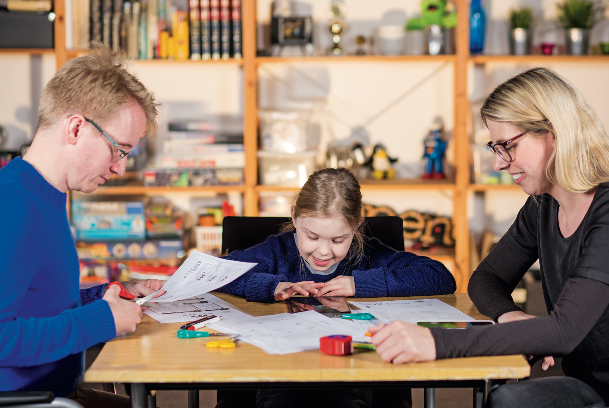 Der Vorschlag, sich mal wieder mit der ganzen Familie an den Tisch zu setzen, um etwas zu spielen, stößt bei manchen Kindern und Jugendlichen auf wenig Begeisterung. Sie beschäftigen sich lieber allein mit ihrem Smartphone. Das will die App „Escape Team“ ändern. Mit ausgedruckten Rätselbögen, Scheren, bunten Stiften und Klebestreifen bewaffnet, tritt man als Team gemeinsam gegen die Uhr beziehungsweise gegen den Bösewicht an. Jede Mission muss innerhalb einer vorgegebenen Zeitspanne gelöst sein, der Countdown dazu läuft während des Knobelns auf dem Bildschirm des Tablets oder des Smartphones. Hier gibt man auch die Lösungs-Codes ein. Kurze, hörspielartige Sequenzen leiten mit Hinweisen und Hintergrundinformationen durchs Spiel.