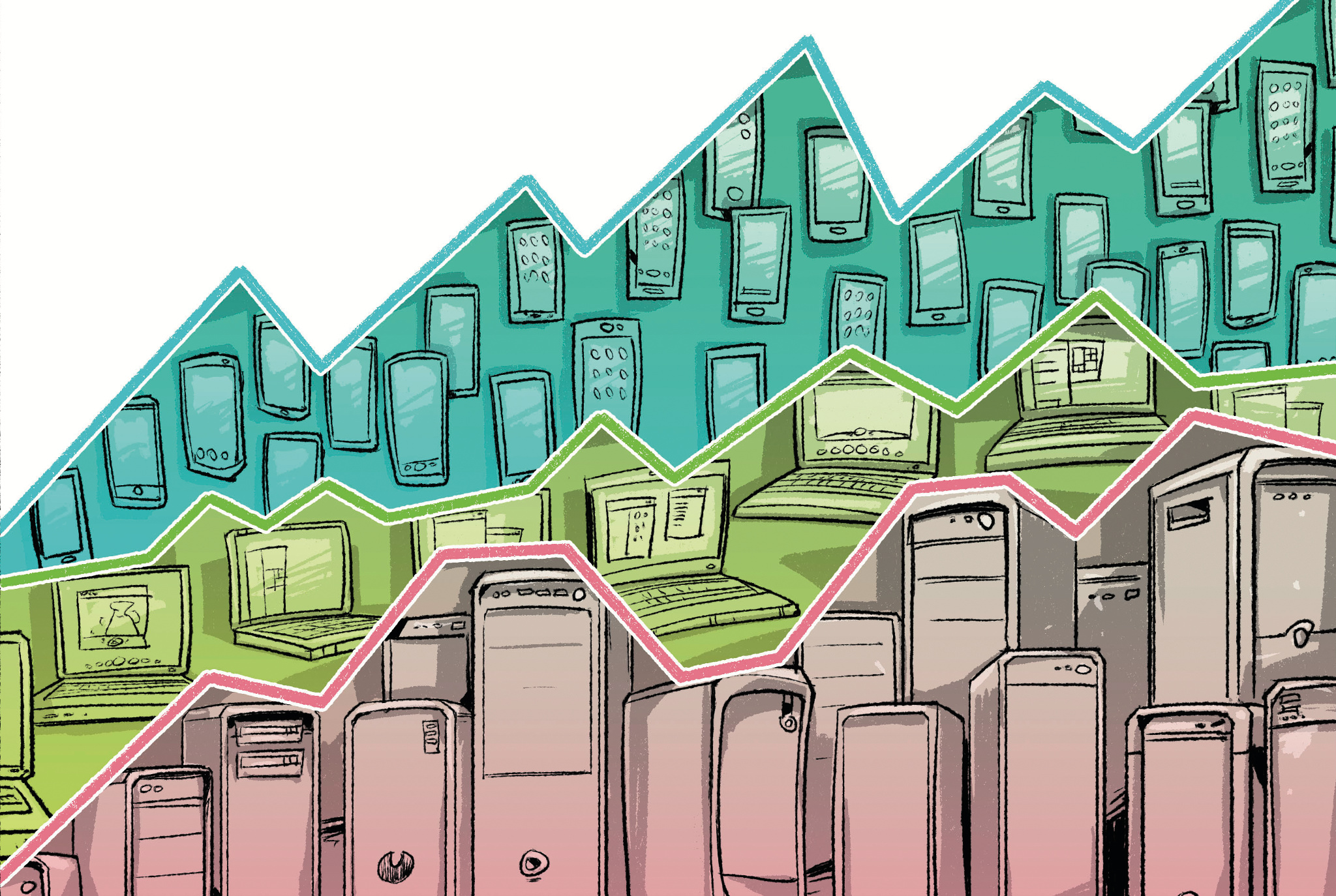 Der Notebook-Markt durchlebte in den vergangenen Jahren mehr Höhen und Tiefen, weil diese Geräteklasse deutlich vielfältiger ist. So mussten die Hersteller preiswerter Notebooks ab 2010 durch die neu hinzugekommenen Tablets kräftige Verluste hinnehmen. 2014 erreichte der Tablet-Boom sein Maximum, danach machten Smartphones mit größeren Displays (Phablets) die kleineren Tablets überflüssig.