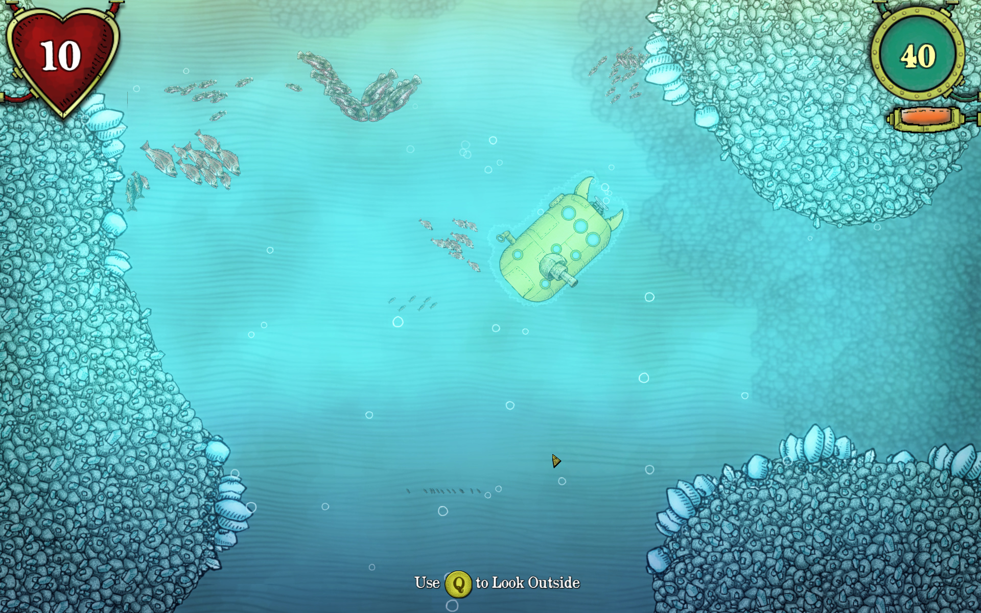 Auch unter Linux kann man jetzt in „We need to go deeper“ gemeinsam ein U-Boot steuern und gefährlichen Monstern trotzen.Per Tastendruck wechselt man zwischen der Ansicht des U-Boot-Inneren und der Tiefseewelt außen.