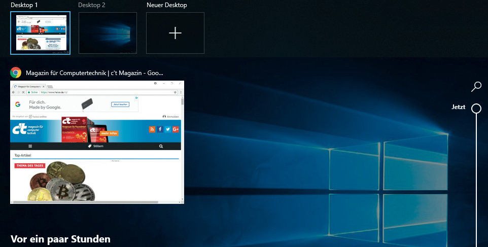 Zu finden ist die Funktion dort, wo früher die Task-View war: in der Startleiste neben dem Suchfeld oder über die Tastenkombination Windows+Tab. Cortana kann sich ebenfalls daran erinnern, in welchen Anwendungen man zuletzt gearbeitet hat.