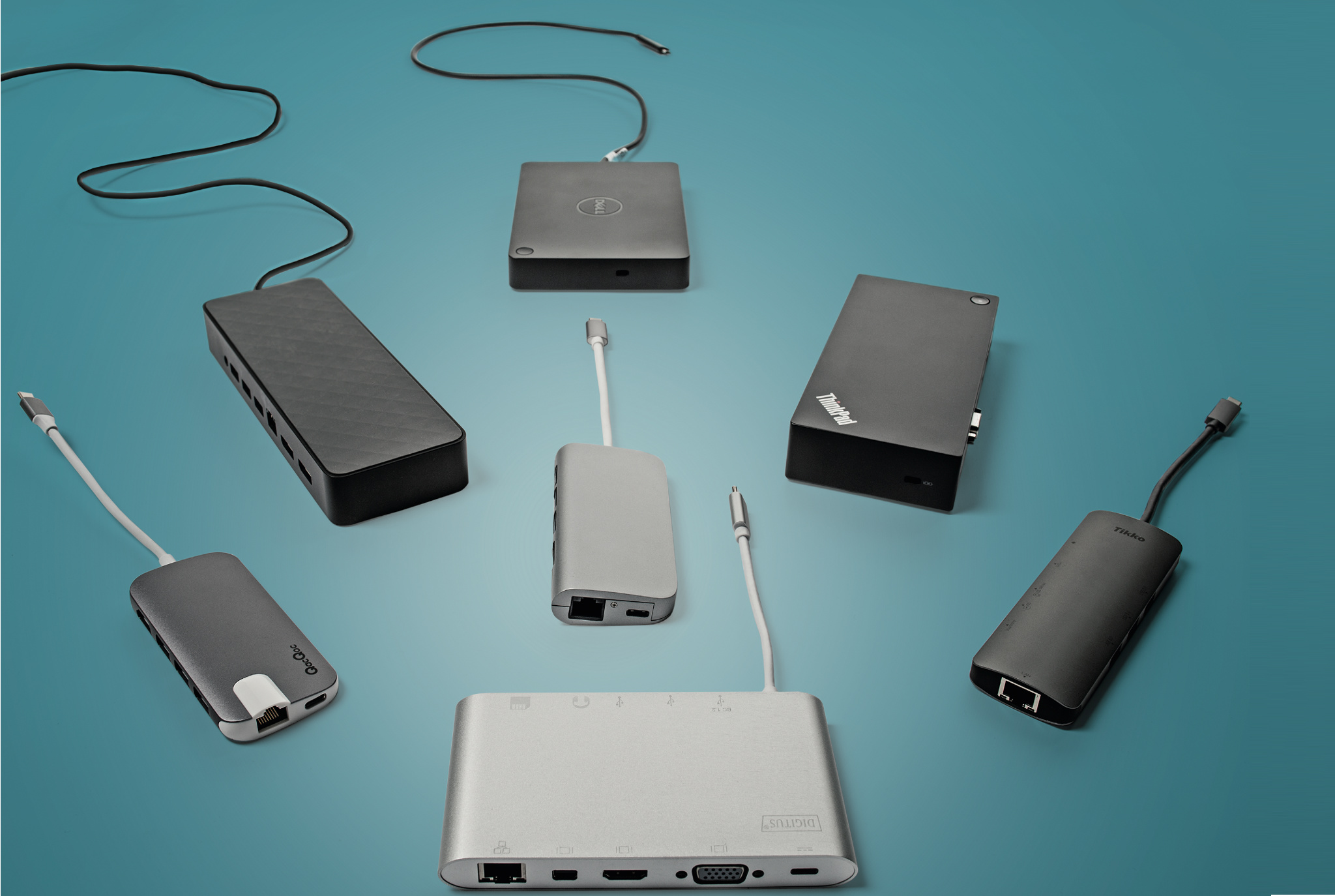 Anfang 2017 hatten wir uns USB-C-Mini-Docks angesehen [1]. Sie können grundsätzlich als stationäre Dockingstationen für Notebooks dienen, doch mit ihren wenigen Anschlüssen sind sie eher für unterwegs gedacht. Für diesen Test haben wir uns neun größere USB-C-Docks mit mehreren USB-Schnittstellen und LAN-Buchse ausgesucht – mit zusätzlichem USB-Hub auf dem Schreibtisch wird der Kabelsalat schließlich nicht kleiner. Drei Kandidaten stammen von Notebook-Herstellern, die anderen von Drittanbietern. Wir haben Letztere stichprobenartig ausgewählt; der Markt ist deutlich größer.