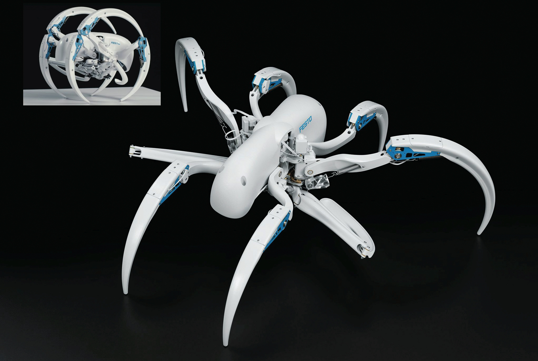 Ein Spinnenroboter von Festo krabbelt umher, kann aber ähnlich der Radlerspinne in der Sahara auch rollen. Zu sehen auf der Hannover Messe: In der Bionik kopieren Konstrukteure besondere Eigenschaften aus der Natur.
