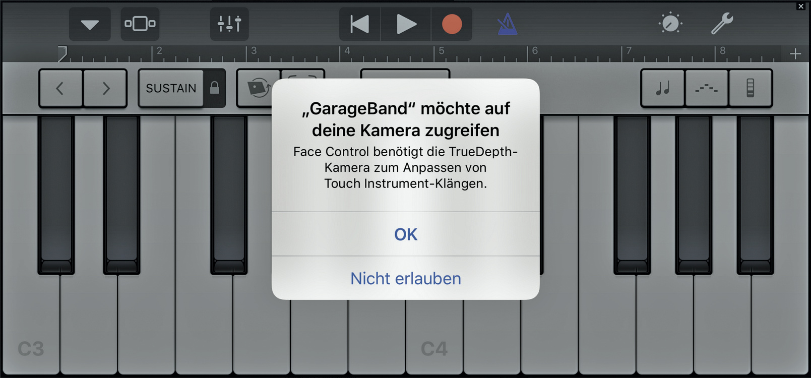Apple setzt das mit dem iPhone X eingeführte Face-Tracking in einer ersten App als Eingabemethode ein: In GarageBand 2.3.3 erfasst das iPhone mittels der TrueDepth-Kamera Gesichtsausdrücke und nutzt sie zur Steuerung bestimmter Klangeffekte. So werde eine „Freihandsteuerung von Musikeffekten wie Gitarren-Wah“ möglich, erklärt Apple. Die Gesichtsdaten werden nur auf dem Gerät verarbeitet.