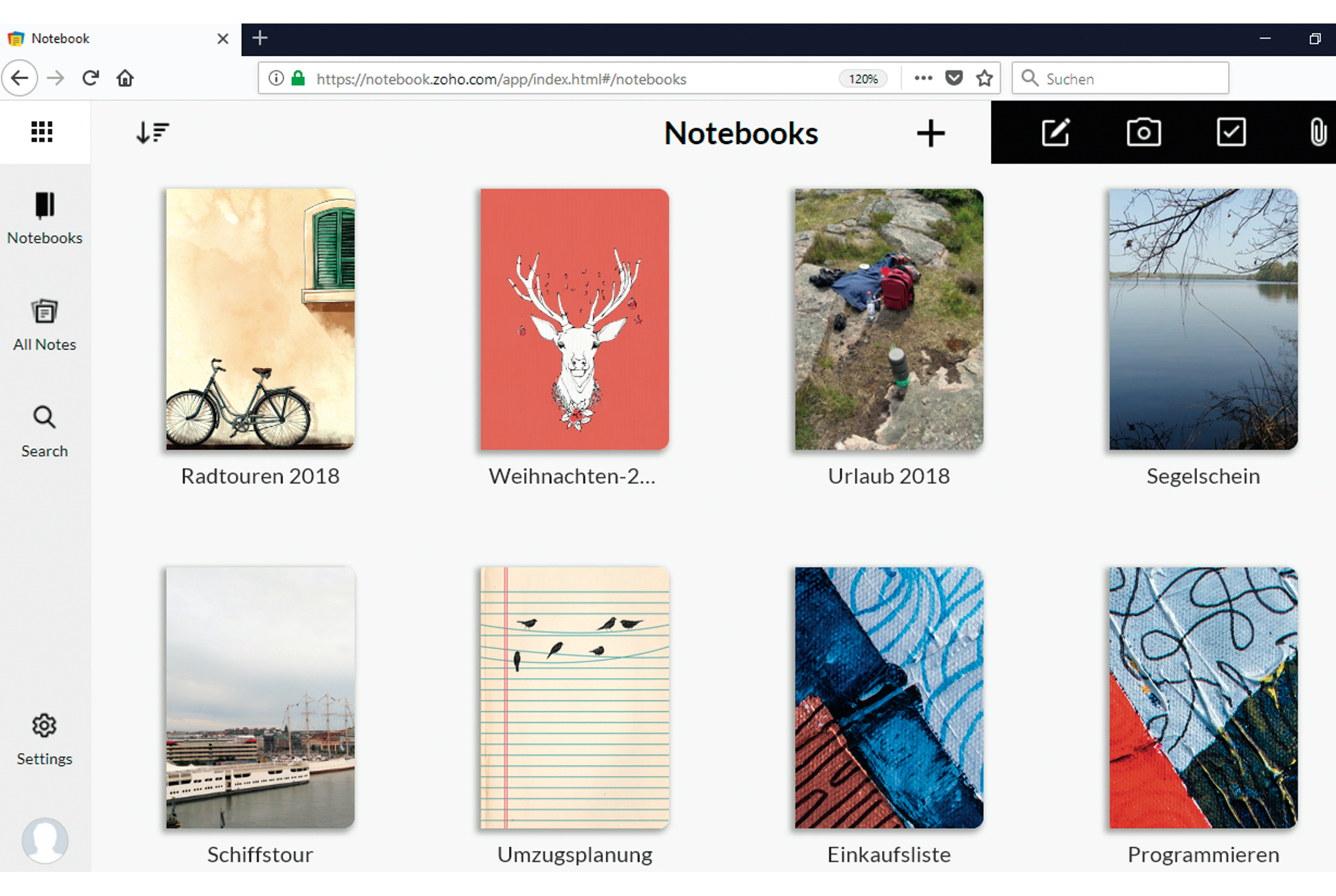 Mit der kostenlosen Notizen-App Zoho Notebook sammelt man Gedanken, Bilder und Checklisten. Webseiten-Inhalte finden ebenfalls ein übersichtliches Zuhause.