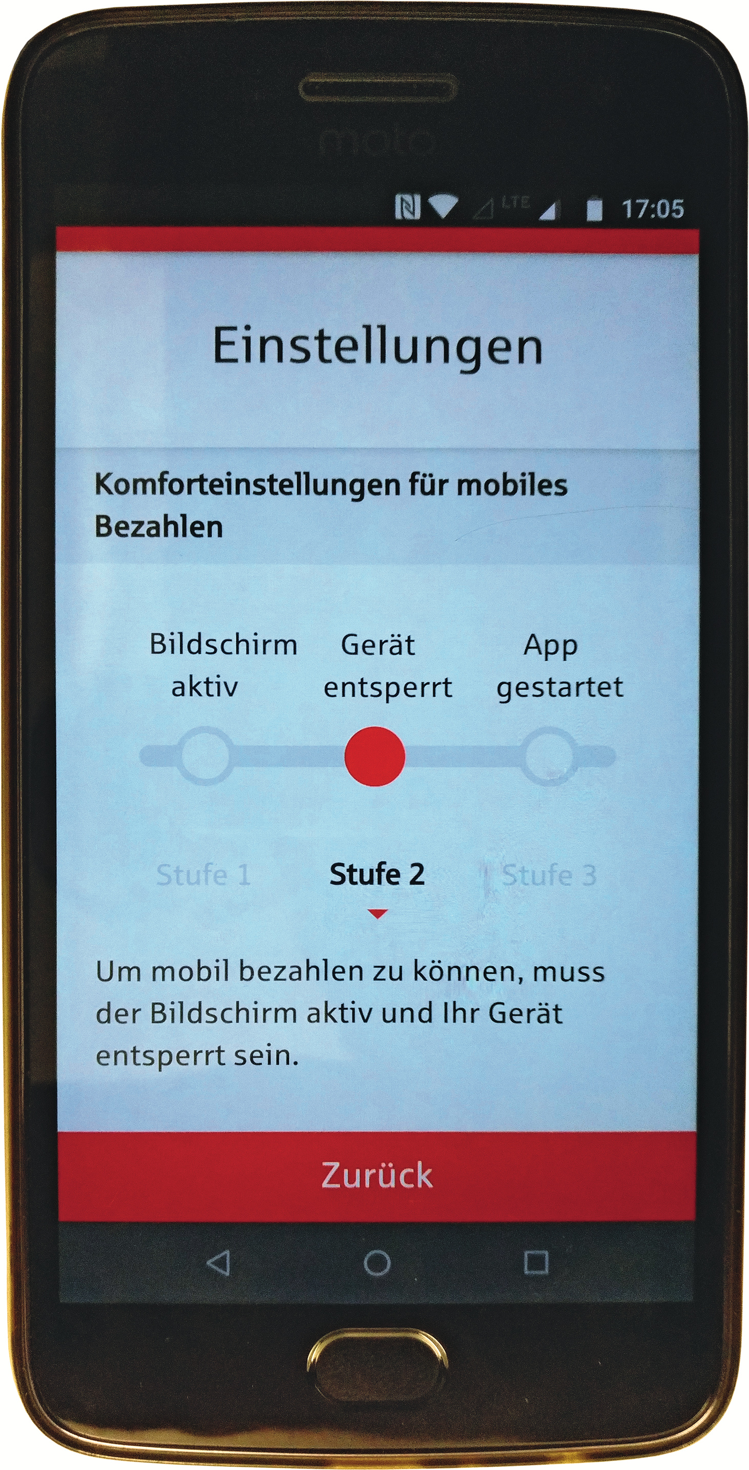 ¶¢Dafür, dass beim Halten Ihres Smartphones an ein Kassenterminal über den NFC-Chip ein Bezahlvorgang ausgelöst wird, gibt es je nach App-Anbieter unterschiedliche Voraussetzungen. Wenn Sie mit den Apps der Sparkassen und Volksbanken zahlen, müssen Sie bei Beträgen bis 25 Euro auf der einfachsten Sicherheitsstufe lediglich das Display aktivieren – das Gerät muss nicht entsperrt sein. Sporadisch fragt Sie das Kassenterminal zusätzlich nach der PIN der Plastikkarte, obligatorisch ist deren Eingabe aber erst ab einer Summe von 25 Euro. Dies gilt für Girokarten ebenso wie für Kreditkarten.