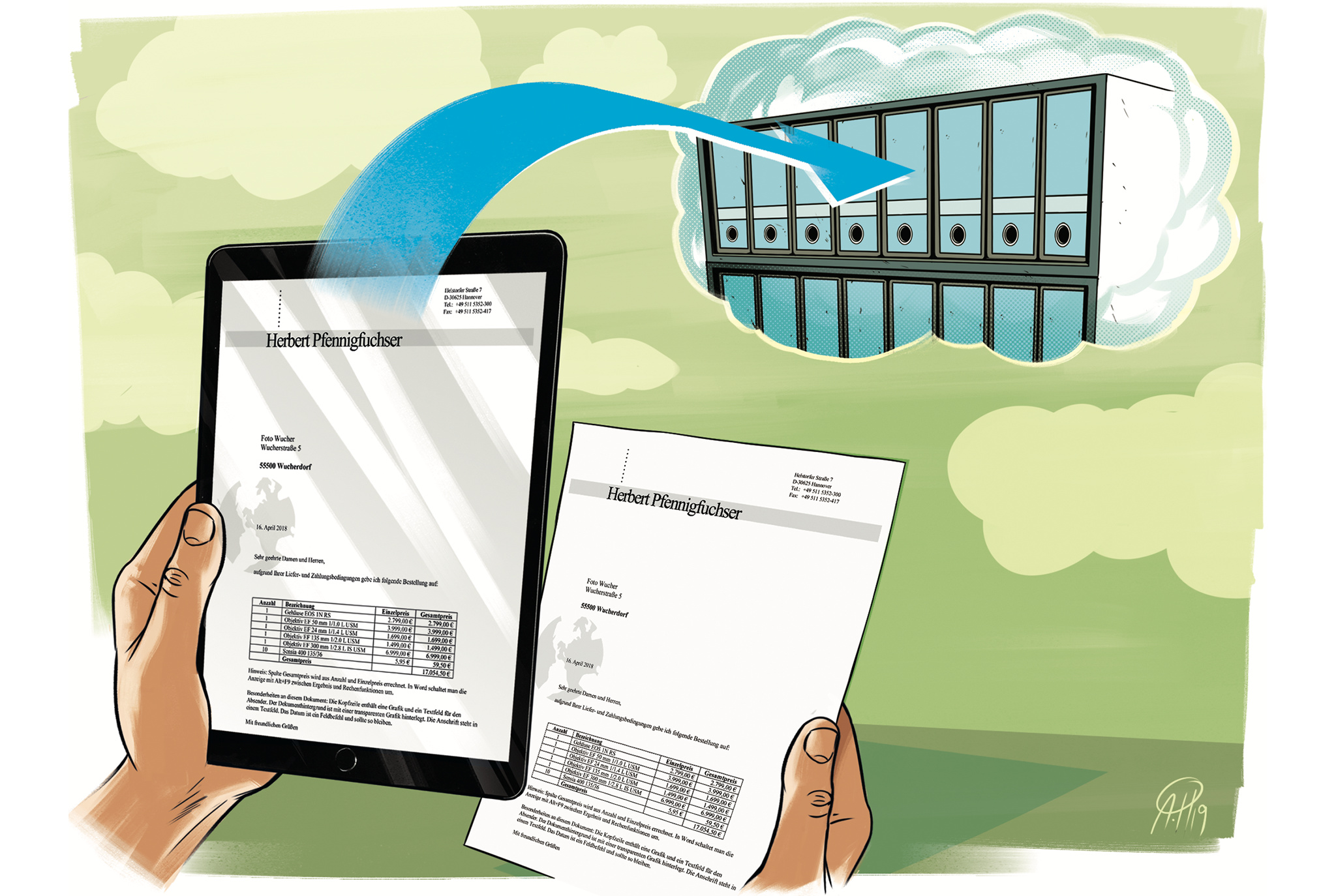 Geschäftsbriefe aller Art bewahrt man im Unternehmen am besten digital auf – nicht nur, weil das für elektronische Dokumente sowieso Vorschrift ist und es naheliegt, sie gemeinsam mit anderen Unterlagen zu speichern. Weitere Argumente dafür sind, dass man Inhalte so schneller wiederfindet als in einem Aktenregal, und dass man sie auch von unterwegs sichten kann – vorausgesetzt, sie sind in einem Cloudspeicher abgelegt. Um freilich eine Rechnung aus dem Kuvert auf die Festplatte zu übertragen, muss man sie zuerst scannen und dann – womöglich im selben Arbeitsschritt – den Inhalt in eine Form bringen, die systematische Recherchen und digitale Arbeitsabläufe ermöglicht.